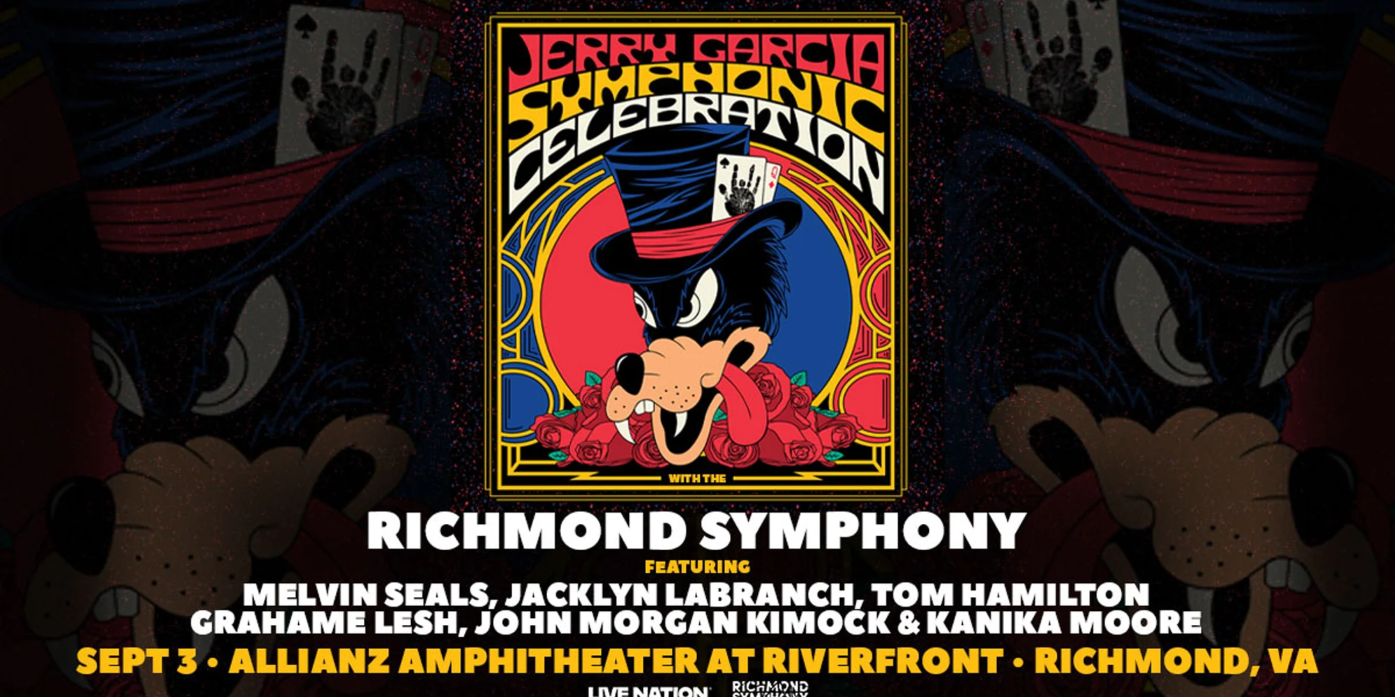 Deadheads, this one’s for you! The musical legacy of the Grateful Dead is celebrated in Richmond with an all-star lineup, including The Jerry Garcia Band’s Melvin Seals and Jacklyn LaBranch on keyboard and vocals; guitarists Tom Hamilton of Joe Russo’s Almost Dead and Phil Lesh’s son Grahame Lesh; drummer John Morgan Kimock; and electrifying vocalist Kanika Moore. Commemorating 60 years of Grateful Dead music and Jerry Garcia’s enduring influence, the Richmond Symphony adds symphonic might to timeless tracks like “Dark Star” and “Ripple.” This performance is a co-presentation with the Richmond Symphony & Live Nation. Tickets must be purchased through the Allianz Amphitheater. Richmond Symphony vouchers, discounts, gift cards, exchanges, etc are not applicable for this event.