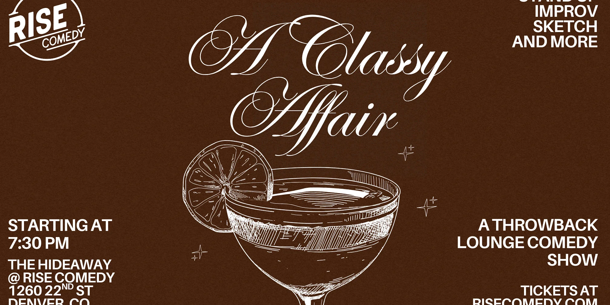 Step back in time to the golden age of lounge entertainment with A Classy Affair—a comedy variety show that channels the spirit of classic 60s late-night nights out, but with a contemporary twist. The show features a dynamic mix of stand-up, improv/sketch, and sometimes even music or dance, all performed by some of Colorado’s most talented and hilarious performers. Hosted by Master of Ceremonies, Sam Gates, A Classy Affair recreates the intimate, retro vibe of 50s and 60s lounge shows. Sam brings the charm of a classic tuxedo and an old-school swagger to the stage, guiding the audience through an unforgettable evening where vintage elegance meets modern comedy.