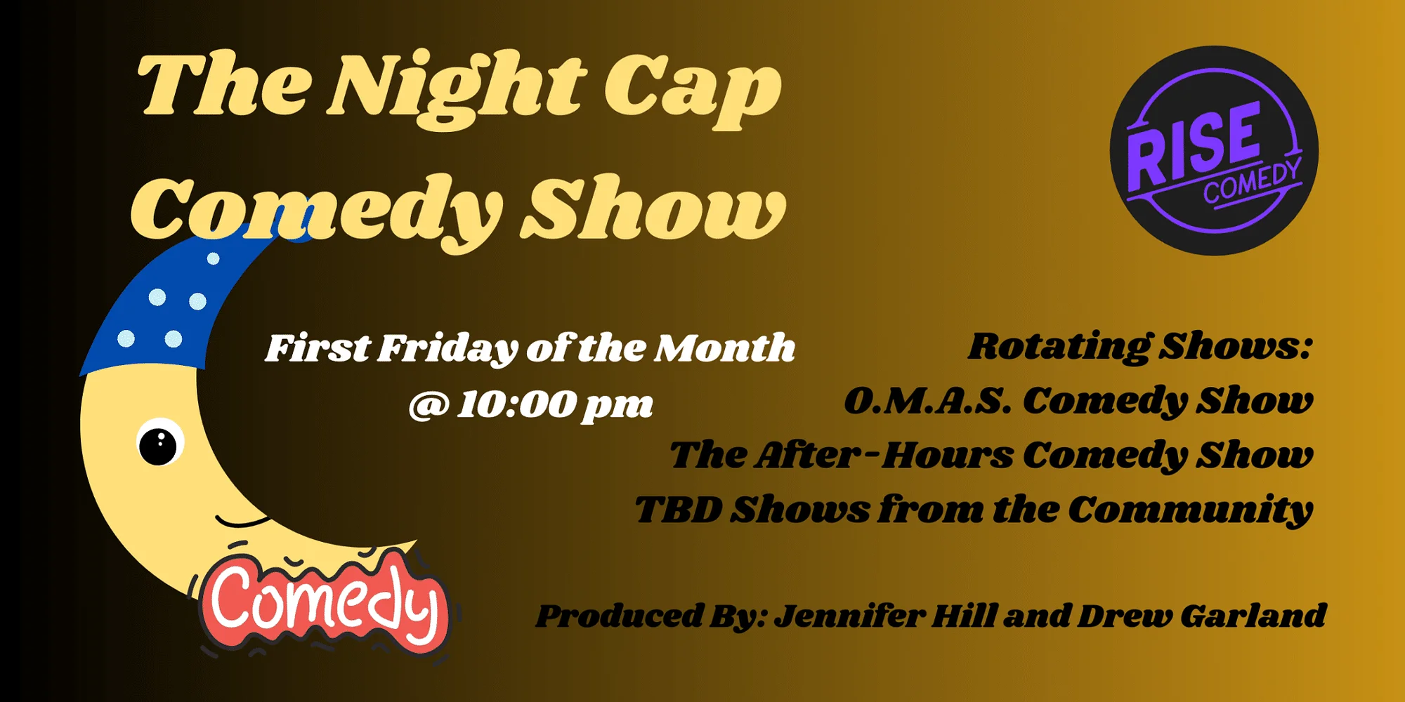 The Night Cap Comedy Show is must see comedy on a Friday night. Come down to Rise Comedy, Denver’s best comedy club, and see some of Denver’s best comedians get your late-night laughs on. Date night? Hanging with your crew? Just wandering around downtown Denver looking for things to do in Denver? The Night Cap Comedy Show at Rise Comedy Show is one of the best live shows in Denver. The Night Cap Comedy Show showcases standup comedians as well as other comedy shows produced by some of Denver’s most creative people.