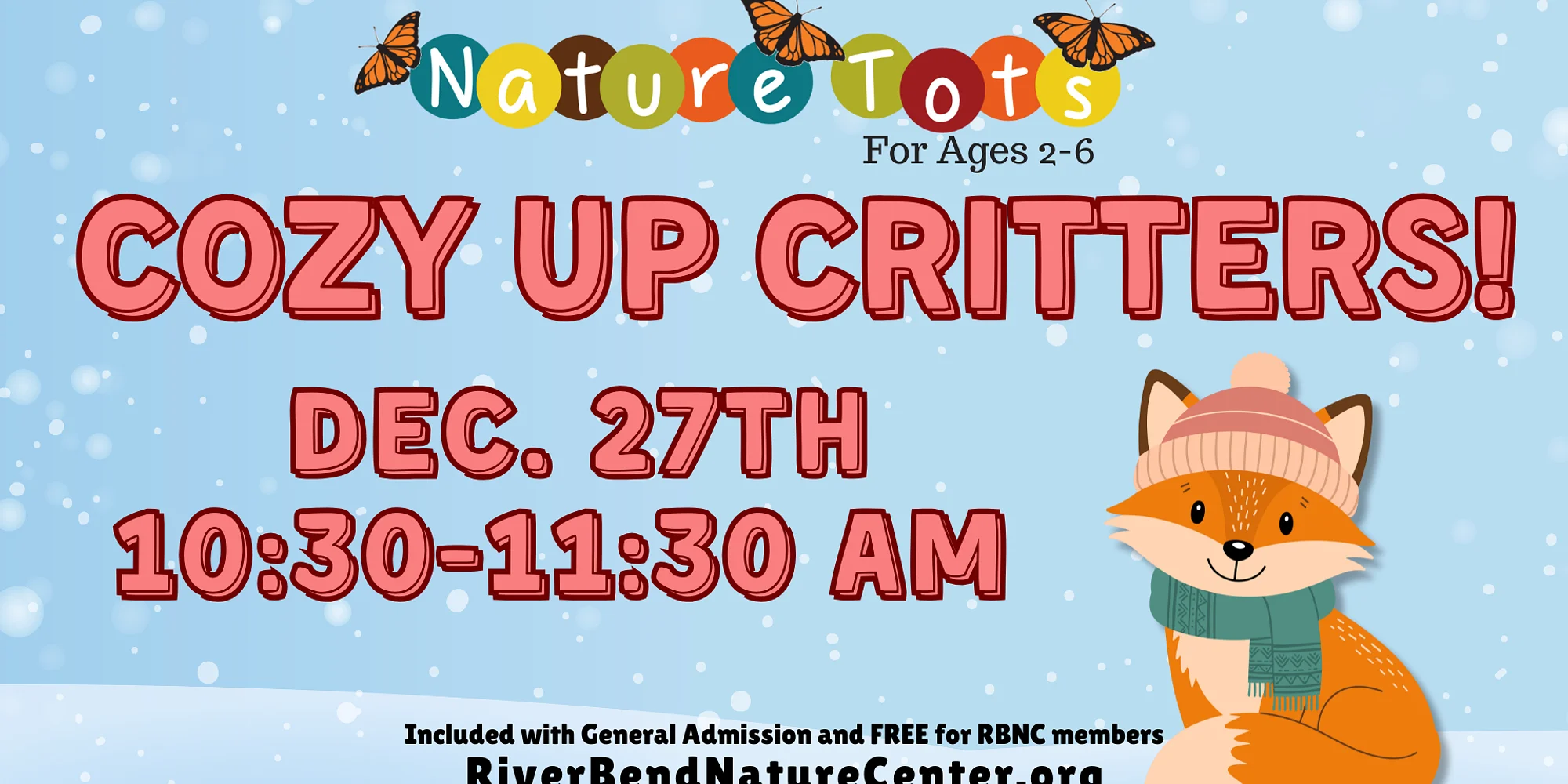 @ Join us on Saturday, December 27th from 10:30 am to 11:30 am for our Nature Tots program, Cozy Up Critters! Learn how animals prepare for winter Read cozy stories about animals in the cold Build your own winter animal den This program is for ages 2-6 and is included with general admission. Nature Tots begins at 10:30 AM, and it is not a come-and-go program. General admission: $6, Children/Seniors/Military/Students: $5, and Children 1 and Under and RBNC members are free. Do you want free admission for all of River Bend’s weekly programs, discounts on birthdays, camps, special events, and in our Nature Gift Shop? You get these perks and more by being a member of River Bend! Click here to become a member today! Add to calendar Google Calendar iCalendar Outlook 365 Outlook Live