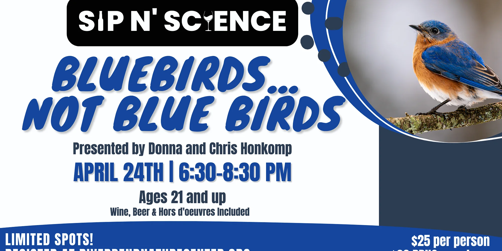 Tue, March 10 @ 3:33 am Join us for Sip N Science: Bluebirds on Friday, April 24th, from 6:30 to 8:30 pm, for an engaging look at Eastern Bluebirds and how to support their populations locally. Donna and Chris Honkomp will discuss bluebird breeding cycles, nest box construction, proper placement, and ongoing maintenance, as well as the impacts of habitat reduction on bluebird numbers. They will also highlight the importance of monitoring and reporting breeding activity through the NestWatch program, which provides valuable data for bird population research nationwide. Ages 21 and up. Tickets are $25 per person, or $20 for RBNC members. Bring a friend and enjoy an evening of bluebirds, stories, and fascinating discoveries—it’s sure to be a memorable night! Reserve your spot below. Presenter Bio Donna and Chris Honkomp have been actively involved in monitoring Eastern Bluebird populations for the past ten years. Donna began monitoring Eastern Bluebirds at the Army Corps of Engineers Lake Benbrook in 2016 as part of the Texas Master Naturalist Program, and Chris joined her four years later when he retired. Both are actively involved with the Rolling Plains Chapter of Texas Master Naturalists and the Texas Bluebird Society. Born and raised in Wichita Falls, they have recently relocated back to the area from Fort Worth. Upon returning to Wichita Falls in 2024, they installed and began monitoring twenty-five bluebird boxes in three area counties and have seen quite a bit of breeding activity in the first year. Donna has a BS from Texas Tech, and an MS from OU. Donna’s previous career involved service in the Texas Department of Aging and Disabilities in Austin, working with the elderly and disabled. Chris has a BS from Texas A&M and an MS from the University of Maryland in Civil Engineering. He retired from the Navy after twenty-six years doing base construction and serving with the Navy Seabees, as well as later jobs doing engineering consulting, environmental cleanup, and facility management. Both keep active with regular time at the Y and getting outdoors as much as possible. **TICKETS AVAILABLE STARTING MARCH 28, 2026** Sip N’ Science FAQ Is it BYOB? No, wine and beer are distributed by a TABC-certified bartender. Please bring your ID with you to the event. Do you have to be 21 and up to attend? Yes. I don’t have a PayPal account, how can I pay? We offer multiple payment options for your convenience! You can pay via Square at checkout, visit the Nature Gift Shop at RBNC during business hours, make a payment over the phone, or send in a check. You can also check out as a guest on PayPal using the instruction below. Please note that your registration will not be complete until RBNC has received both your form and payment. If you have any questions, feel free to call us at 940-767-0843! Add to calendar Google Calendar iCalendar Outlook 365 Outlook Live