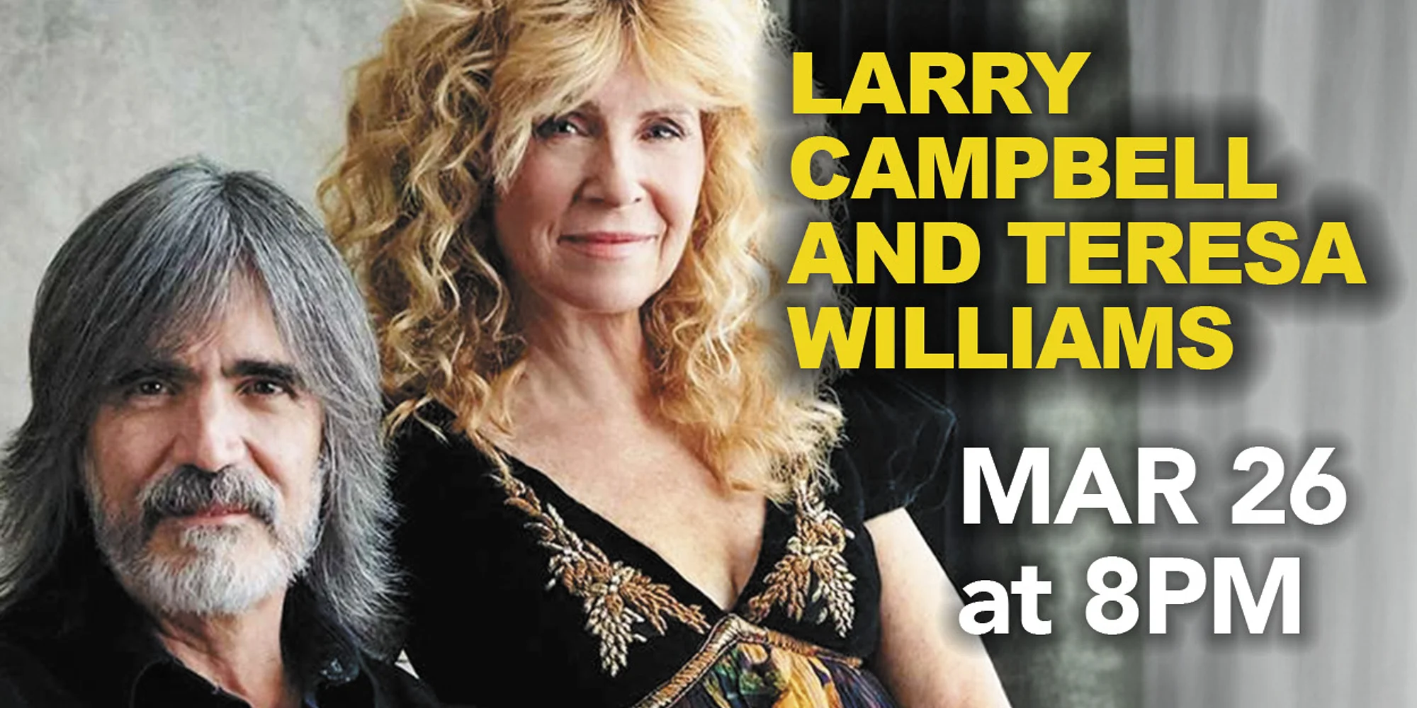 The debut of Larry Campbell and Teresa Williams as a musical duo was decades in the making. Husband and wife, they have long pursued largely independent creative careers that have taken them around the globe many times. Campbell, a virtuosic and versatile multi-instrumentalist, has been a go-to session musician and producer since the 1980s. He later spent eight years backing Bob Dylan on tour and was an integral part of recording 2001’s Love and Theft. Williams, who moved from rural Tennessee to New York City to pursue acting and musical theater, found a niche playing roles that complimented her Southern background and powerful, country-inflected voice. Campbell happened to be the pedal-steel player in a band Williams put together at New York City’s Bottom Line more than 30 years ago—and the rest was history. “As soon as I saw her, I knew she was the one,” says Larry. That epiphany occurred in a Manhattan rehearsal studio. Teresa, an actress and vocalist not long removed from Peckerwood Point, TN, had been pulled into a singing contest. Larry, the New York City native with a burgeoning reputation for his virtuosity on any instrument with strings, was brought in to play pedal steel guitar. “For me, it was love at first note,” she says. Together they went on to capture a greater prize. From the beginning, they shared a musical sensibility; Larry courted her with a Louvin Brothers mix tape. The more they played together, the deeper it grew. Whether it was Larry joining in on the music with Teresa’s family and neighbors under the tree where they were married (“Larry melded perfectly,” says Teresa), or Teresa belting bluegrass songs on the bus with Larry and the rest of Bob Dylan’s band as they traveled between gigs (“It was very fulfilling,” recalls Larry), the couple’s rapport grew richer. “I found a connection I had never experienced before,” says Larry. When Dylan’s manager, Jeff Kramer, suggested that they make hay with this natural duo, he expressed a thought that had been already brewing in Larry’s head. But Larry wasn’t ready. “I had to start seeing myself as a singer and songwriter before I could take that step.” The couple took another decade, much spent playing with Levon Helm and his band at his legendary Midnight Rambles in Woodstock, before Larry and Teresa elevated their rapport to the next level. After leaving Dylan’s band in 2004, Campbell answered the call from Levon Helm, drummer and singer with The Band, to serve as musical director at the Midnight Ramble,” the intimate concert series at Helm’s home studio in Woodstock, New York. At Helm’s invitation, Williams came on as a regular singer. Campbell also co-produced two Grammy winning albums with Helm—2007’s Dirt Farmer and 2009’s follow-up Electric Dirt. All This Time is the couple’s fourth album since taking that leap, following Larry Campbell and Teresa Williams (2015), Contraband Love (2017), and Live at Levon’s (2023). All This Time , says Larry, “feels more intuitive to m...