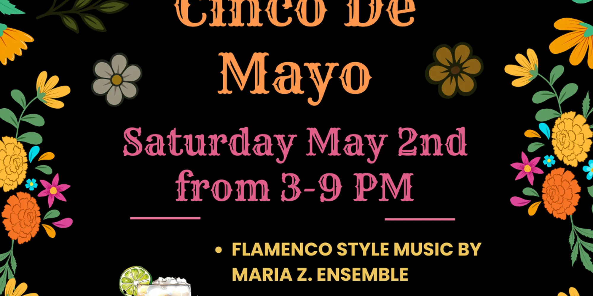 Join us for S&S Brewery’s annual Cinco De Mayo Celebration May 2nd from 3-9pm. Live music by the by incredible Maria Z. Ensamble. MARIA ZEMANTAUSKI is a nylon-string guitarist and composer whose style is influenced by a variety of musical genres, most notably, Spanish classical, flamenco and American fingerstyle. She has performed in Spain, Italy and across the continental United States to great acclaim. Mexican Fusion food by Gourmelis S&S Mexican Lager and festive bar drinks as well as Cinco inspired games for all ages. Happy Hour from 3-5pm Family Friendly event! The outside area and playground will be open!