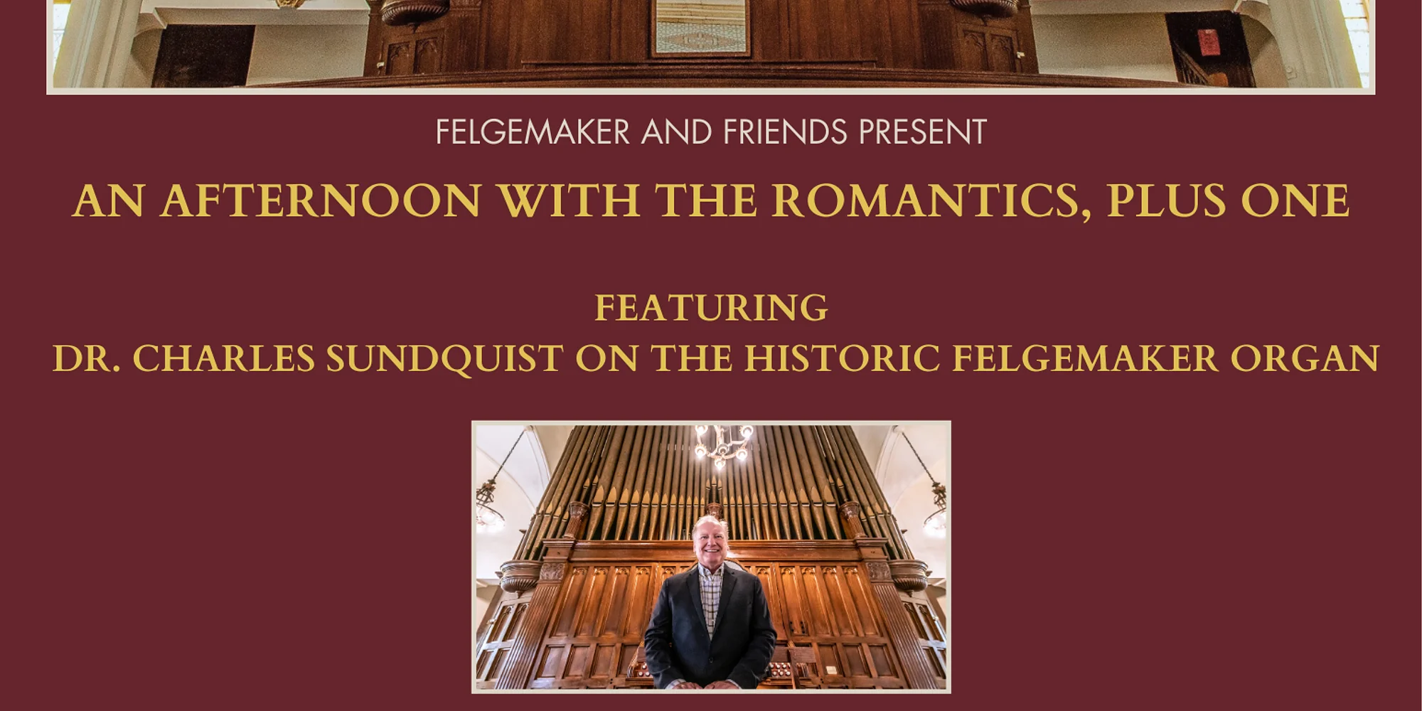 The Friends of the Felgemaker presents an afternoon of organ music on Sunday, April 19 at 3:00 p.m. featuring Sacred Heart Music Center’s Resident Organist, Dr. Charles Sundquist. The concert will showcase works played on the music center’s historic Felgemaker pipe organ. The program entitled “An Afternoon with the Romantics,” includes diverse works by romantic composers Bossi, Buck, Widor, and Rheinberger, plus a work by the master of baroque organ music, J.S. Bach. Dr. Charles Sundquist is a native of Duluth, Minnesota. After his initial organ studies with Ron Gauger at the University of Minnesota, Duluth, he received his Master’s and Doctorate degrees in Organ Performance and Literature from the Eastman School of Music, where he was a student of David Craighead. He was awarded the Prix d’Excellence from the Conservatoire de Région de Ruiel-Malmaison in France while a student of Marie-Claire Alain. While in Paris, he was Associate Choirmaster and Organist at the American Episcopal Cathedral, accompanist for the Paris Ballet School and coach/accompanist for members of the Paris Opera Chorus. Dr. Sundquist served as Organ Scholar at Trinity Church Wall Street, Associate organist at St. Clement’s Church Philadelphia and Director of Music/Organist at St. Paul’s Lutheran in East Windsor, NJ. Tickets are $20 (plus $3.18 service fee) on Eventbrite HERE or $20 at the door. Student rush tickets will be available at the door for $5.