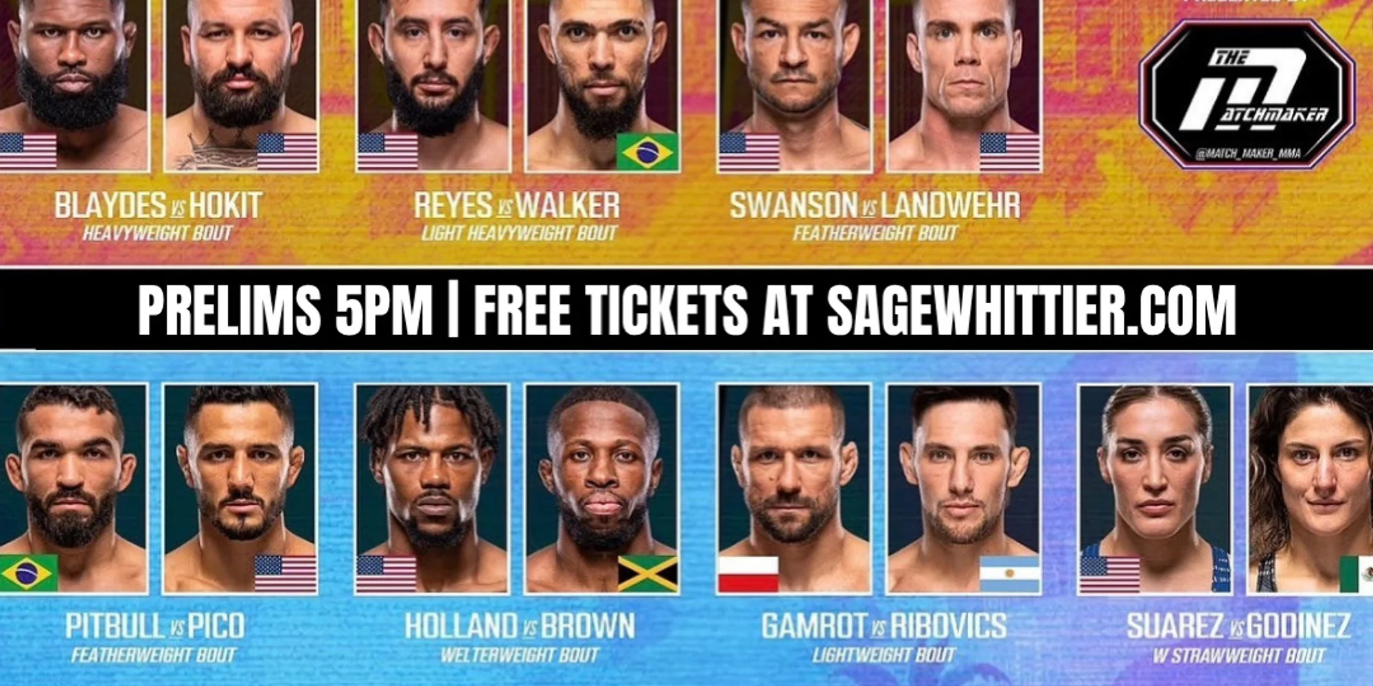 Watch UFC 327 live at Sage Whittier Prochazka vs Chimaev main event • Prelims 5PM • Main Card 9PM • Free Entry • Full Fight Audio 🥊 UFC Fight Night Watch Party at Sage Whittier! 🥊 It’s fight night! Grab your crew and catch every strike, takedown, and knockout LIVE at Sage Whittier. 🎥 PPV Fights Start: 7:00 PM 🔥 Main Event: Around 9:00 PM 🎉 After Party: 21+ ✨ No Age Limit for Fight Viewing Bring the whole crew — kids are welcome for the fights! After party is strictly 21+ and dress to impress for that one. ✨ Seating First come, first serve — so come early to snag the best spot! ✨ Dress Code Trendy fits — Nothing sloppy or baggy. ✨ Food & Drinks • Fuel up with epic bites — pizza, wings, seafood, steak & more. • Check the menu here: www.sagewhittier.com/menu • Sip from 24 beers on tap, full bar, and killer cocktails mixed by Sage’s own Moises Luna. ✨ Fight Night Vibes • 16 giant HDTVs, including 3 massive 150” projection screens — no bad seat in the house! • Full audio and commentary in surround sound! • After the final bell, keep the party rolling in 2 dance rooms with DJs spinning all night. ✨ Parking • Street parking out front • City lot next door • Huge Rite Aid lot behind us Don’t miss the action — Sage is where fight night comes ALIVE! 🥊🎉