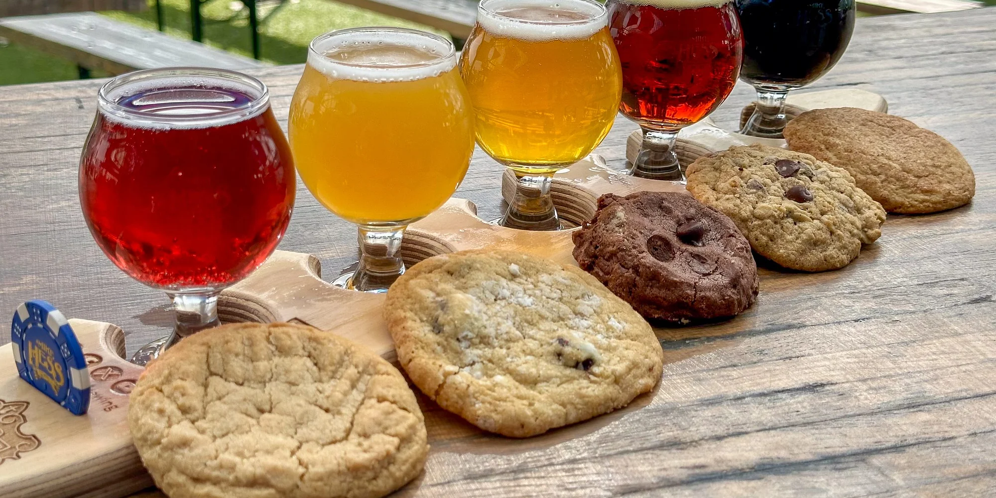 Cookie & Beer Flights are back! From April 3-12, stop by any of our Taprooms to enjoy a curated flight featuring five select MHB beers, each perfectly paired with a delicious handcrafted cookie from Deb’s Cookie Jar. A portion of proceeds from every cookie flight will be donated to our April charity, IEF. Peanut Butter X Sangria Seltzer White Chocolate with Cranberries X Hop Cloud Hazy IPA Darkside X Into the Sunset Blood Orange IPA Oatmeal Chocolate Chip X Grazias Especial Dark Mexican Lager Snickerdoodle X Hooligan Irish Stout