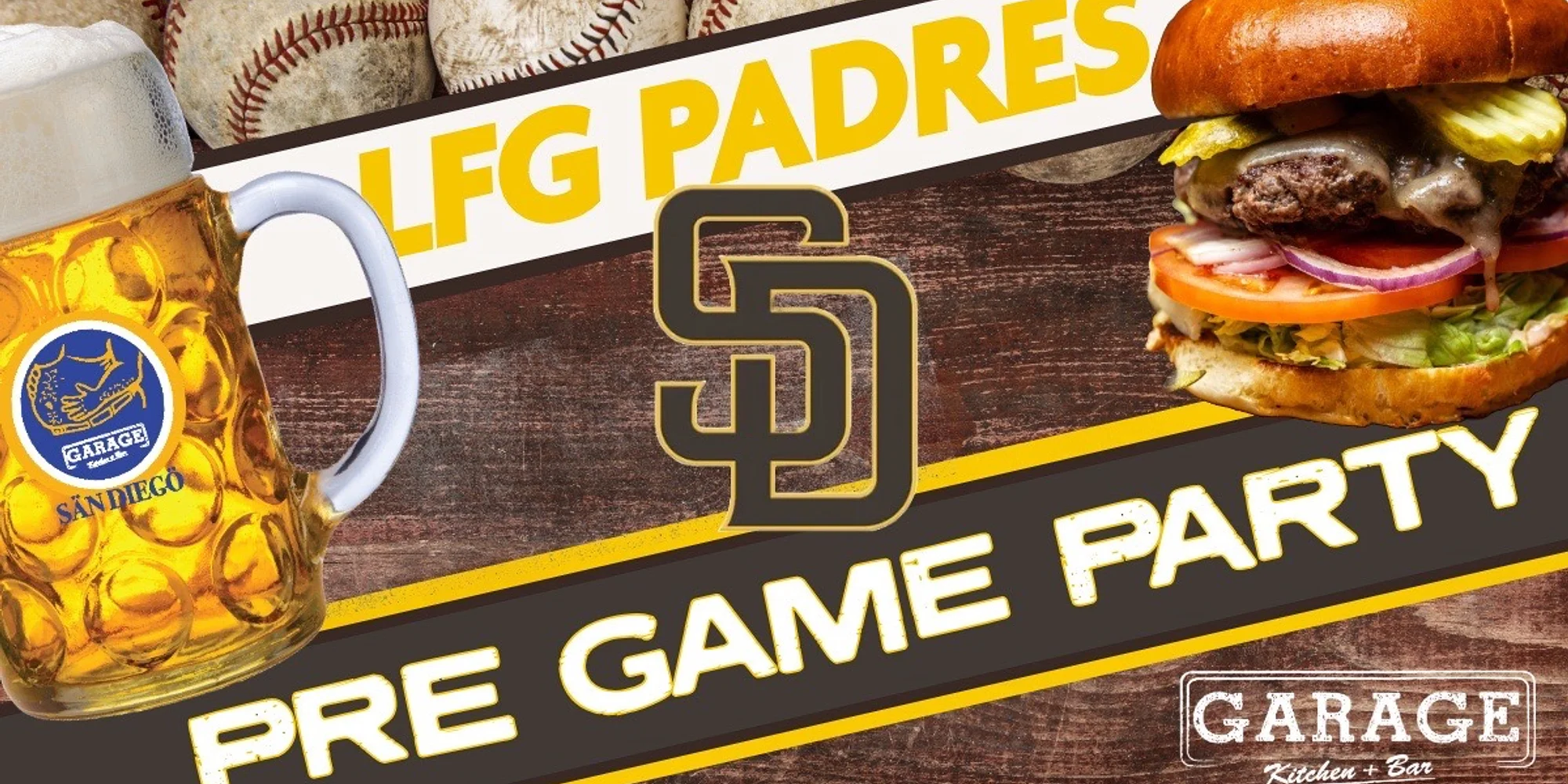 THE BEST PADRES PRE-GAME BAR NEAR PETCO PARK Looking for the best Padres pre-game bar near Petco Park? Garage Kitchen + Bar in the Gaslamp Quarter is just a short walk from the stadium at 655 4th Ave, San Diego, CA. It’s the perfect place to grab food and drinks before every San Diego Padres home game. Join fellow fans before every Padres home game for great food & great deals at the best Gaslamp sports bar downtown San Diego. With TVs throughout our two-story venue, you can keep up with pre-game coverage while enjoying unbeatable game day specials. GAME DAY SPECIALS Crazy Bob’s Burger w/ Fries – $6 (11am–12pm & 3pm–4pm) Bottomless Mimosas – $20 (11am–3pm) Happy Hour – 51% Off All Drinks + $3 Off Apps (4pm–6pm) Except top shelf and specialty cocktails. $12 Flat Rate Parking – 3 Hours At Horton Plaza Garage w/ validation sticker. Regular rates after 3 hours. Table Reservations are accepted for both Brunch & Dinner TABLE RESERVATIONS Located just minutes from Petco Park, Garage Kitchen + Bar is the go-to spot in the Gaslamp for Padres pre-game drinks, food, and watch parties. Whether you’re heading to the stadium or staying to watch the game with other fans, there’s no better place to start your Padres game day. Go Padres! Garage Kitchen + Bar 655 4th Avenue San Diego, CA 92101