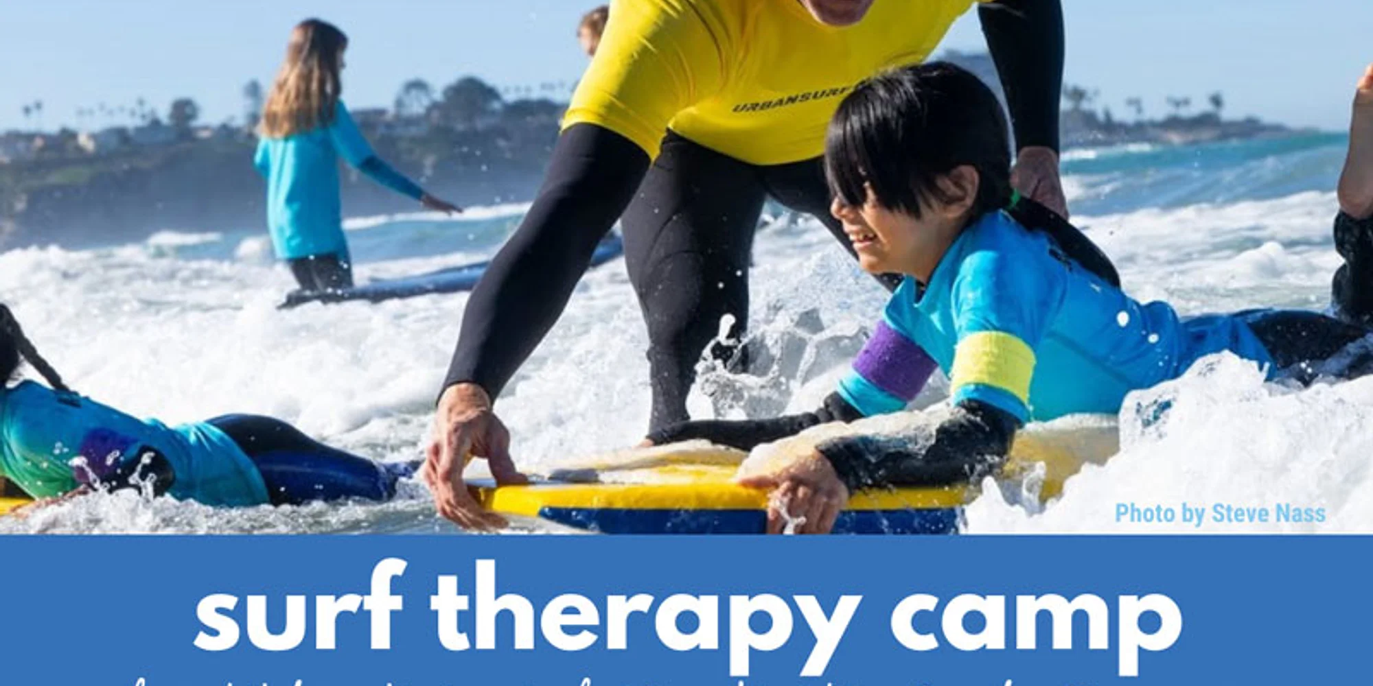 Saturday May 16, 2026 Surf Therapy Camp at La Jolla Shores 8400 El Paseo Grande La Jolla, CA 92037 Our Surf Therapy Camps serve foster youth, and children living in kinship and adoptive care. **Sign up forms will open one month prior to the event Please check the email you provide for additional details if you have not attended a surf camp this season. Emails will be sent out the week of the event by jaidyn@us4k.org. For kids who want to attend but not surf: We will have a sign up for non-surfers so athletes can enjoy recreational activities and sports with our on land activities/recreation volunteers during the session. **Recreational activities do not include boogie boarding or other water time. Any Questions? Please contact our Surf Therapy Camp Coordinator. Jaidyn Cooper jaidyn@us4k.org ———————————————————————- **We try to maintain a 1/1 ratio of kids to volunteers in the water so if you want to volunteer, please do so as soon as possible, and don’t wait until the day before the event. The number of kids we can serve depends on the number of volunteers who sign up and we appreciate you more than you can imagine. Volunteer Arrival Times: Set Up Crew / Volunteers: 7:15 AM AM Registration Team / AM Wetsuit / Rash Guard Team, Morning In-Water, Activities / Recreation Volunteers: 8:00 AM Food Service Team: 11:00 AM Athlete Arrival Times: AM Session Kids: 9:00 AM Please review our US4K Code of Conduct Privacy Policy/Terms Schedule for the day: 7:15 AM – EVENT SET-UP TEAM ARRIVES / SETUP CAMP 8:00 AM – REGISTRATION TEAM, MORNING VOLUNTEERS ARRIVE / CHECK-IN 9:00 AM – NEW VOLUNTEER ORIENTATION / NEW VOLUNTEER IN-WATER INSTRUCTION 9:00 AM – MORNING KIDS ARRIVE / REGISTRATION / KIDS + CAREGIVER PRE-SURF SURVEYS / SUIT UP 9:30 AM – ANNOUNCEMENTS / KIDS LAND SURF INSTRUCTION / STRETCHES 10:00 AM – 12:00 PM – SURF TIME / BEACH ACTIVITIES 12:00 PM – 1:00 PM VOLUNTEER + KIDS POST-SURF SURVEYS / LUNCH 1:00 PM – PRESENTATIONS / ACTIVITIES 1:30 PM – 2:00 After Lunch Beach Cleanup 2:00 – 3:00 PM – SURF CAMP COMPLETE / TEAR DOWN CREW ———————————————————————- Every US4K surf therapy camp is themed and we pride ourselves on collaboration with the community including: nonprofit organizations, businesses, volunteer groups, clubs, and foundations. We strive to create safe spaces for children overcoming trauma between the ages of 3-18 so that they may have equal access to the transformative power of the ocean. Additionally, we practice "Leave no Trace" policies, ensuring we leave our beaches cleaner after every event. We teach sustainability, encouraging our volunteers and young athletes to bring reusable water bottles and eliminate the use of single-use plastic at each event. With our partnership with Board & Brew, we promote healthy lifestyles by offering every child, chaperone and volunteer a healthy, gourmet sandwich, fresh fruit and nutritious snacks at every surf therapy camp. Urban Surf 4 Kids surf therapy camps pair an adult vo...