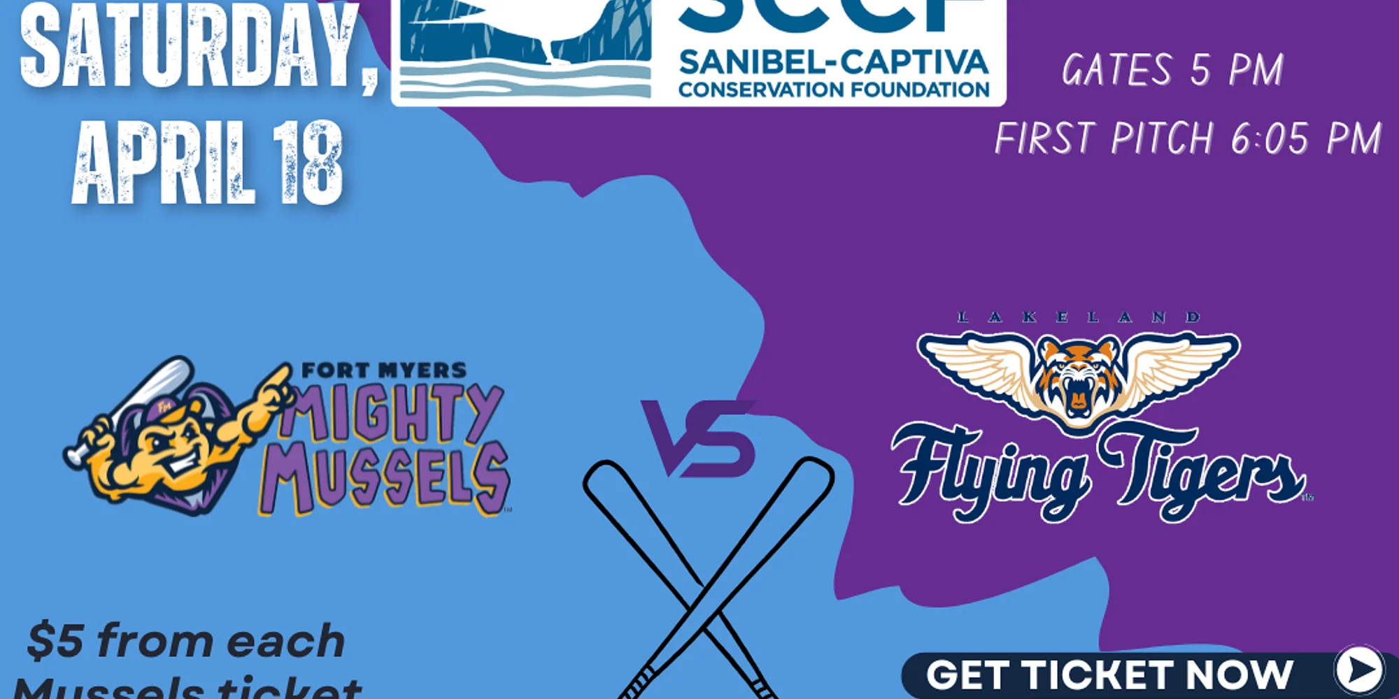 Join us for “Going to Bat for Bats” with the Fort Myers Mighty Mussels! $5 of your ticket purchase will go directly toward SCCF’s bat monitoring and conservation efforts, including helping us purchase acoustic monitoring equipment to determine bat species presence and range on Sanibel, Captiva, and surrounding islands. -Gates open at 5 PM, so come early to soak in all the pre-game festivities celebrating the SWFL golf scene. -The game kicks off at 6:05 PM, and you can enjoy the fun all night long.