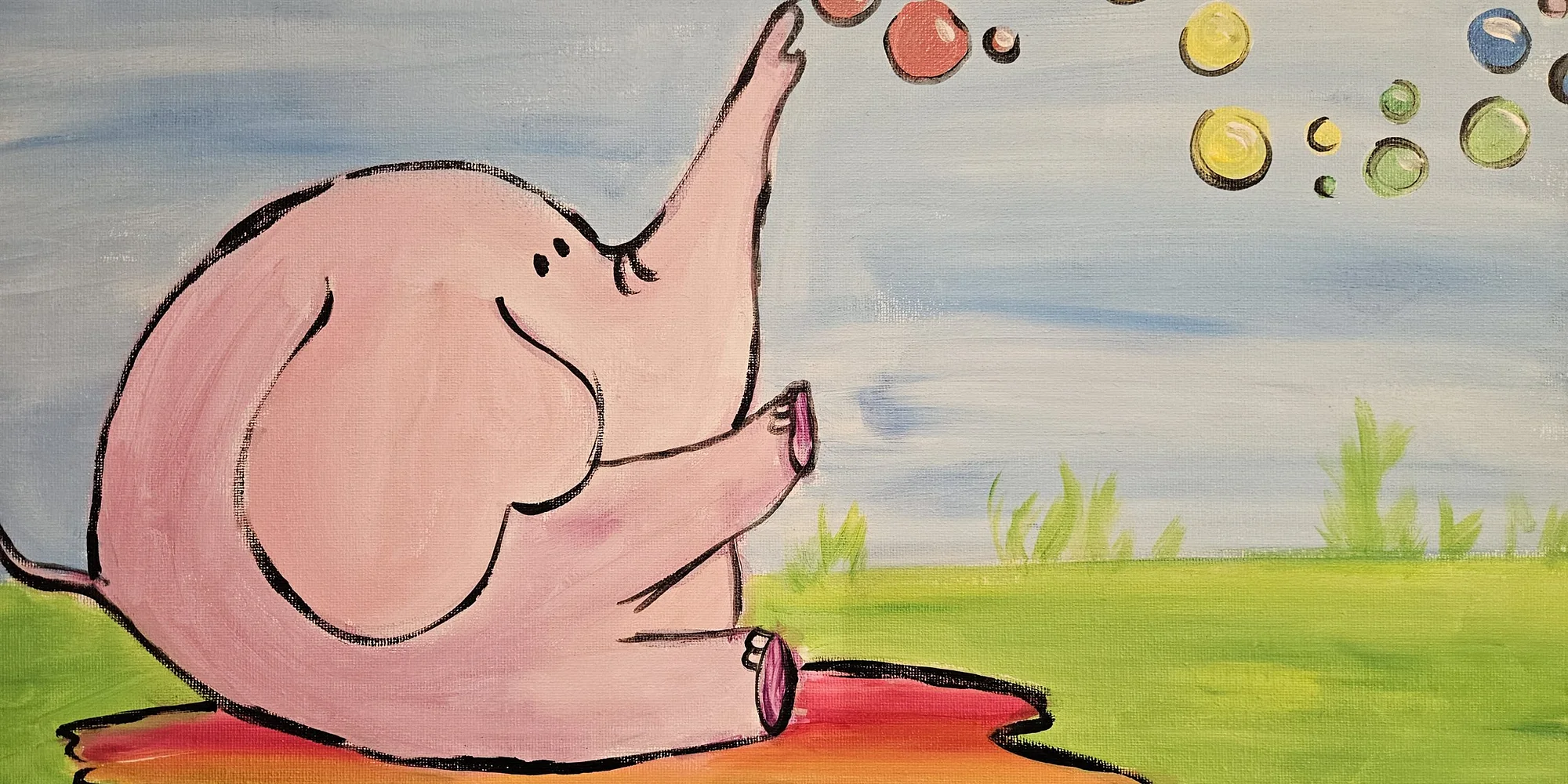 Join us for this silly elephant painting and get lost in the Zen of painting rainbow bubbles. Beginners welcome!
