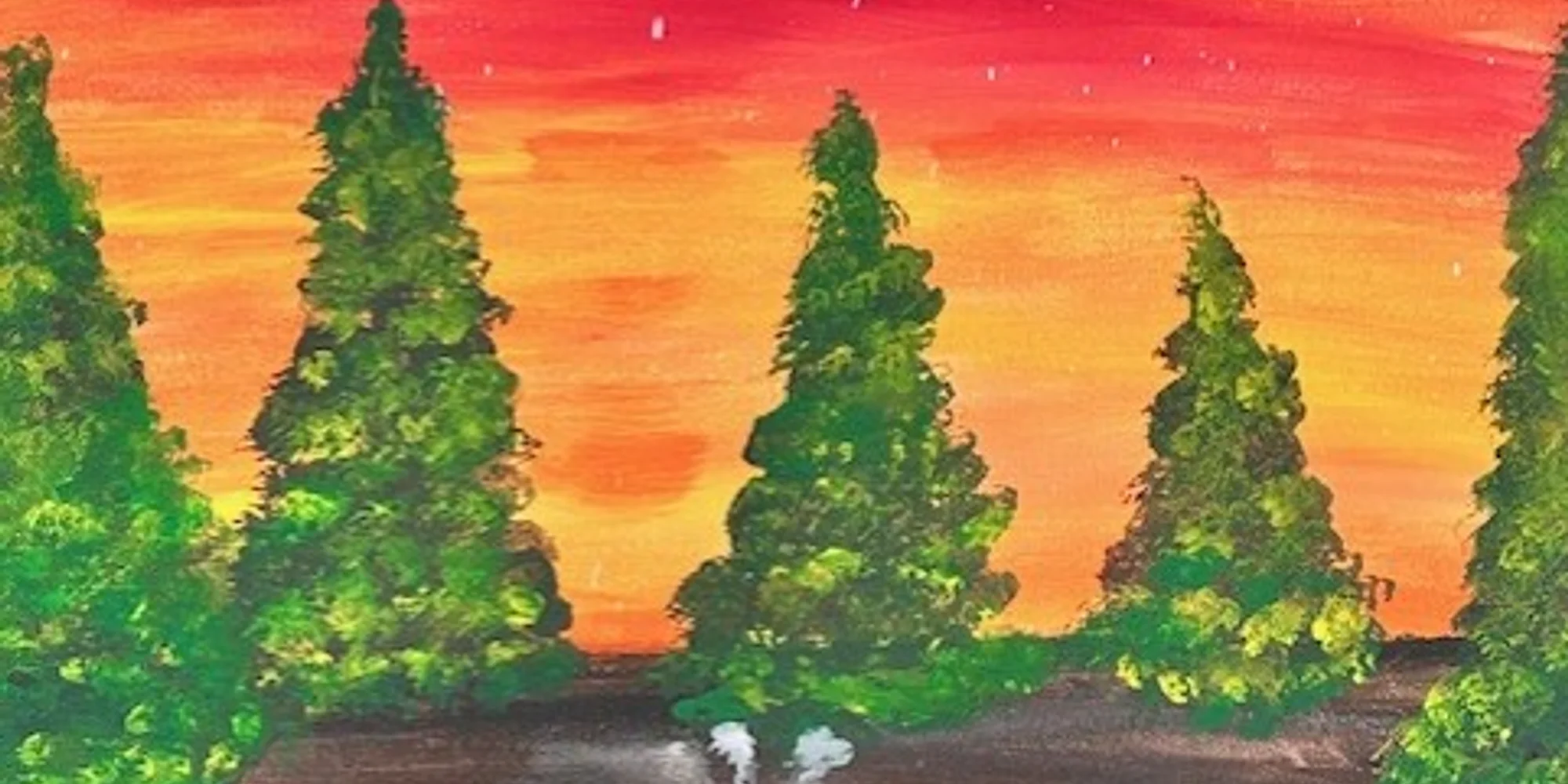 It’s camping season! Join us for this paint this fun, customizable ghostin’-and-roastin’ scene. We’ll teach you beautiful sunset blending techniques, make some happy little trees and some happy little ghost campers. Beginners welcome!