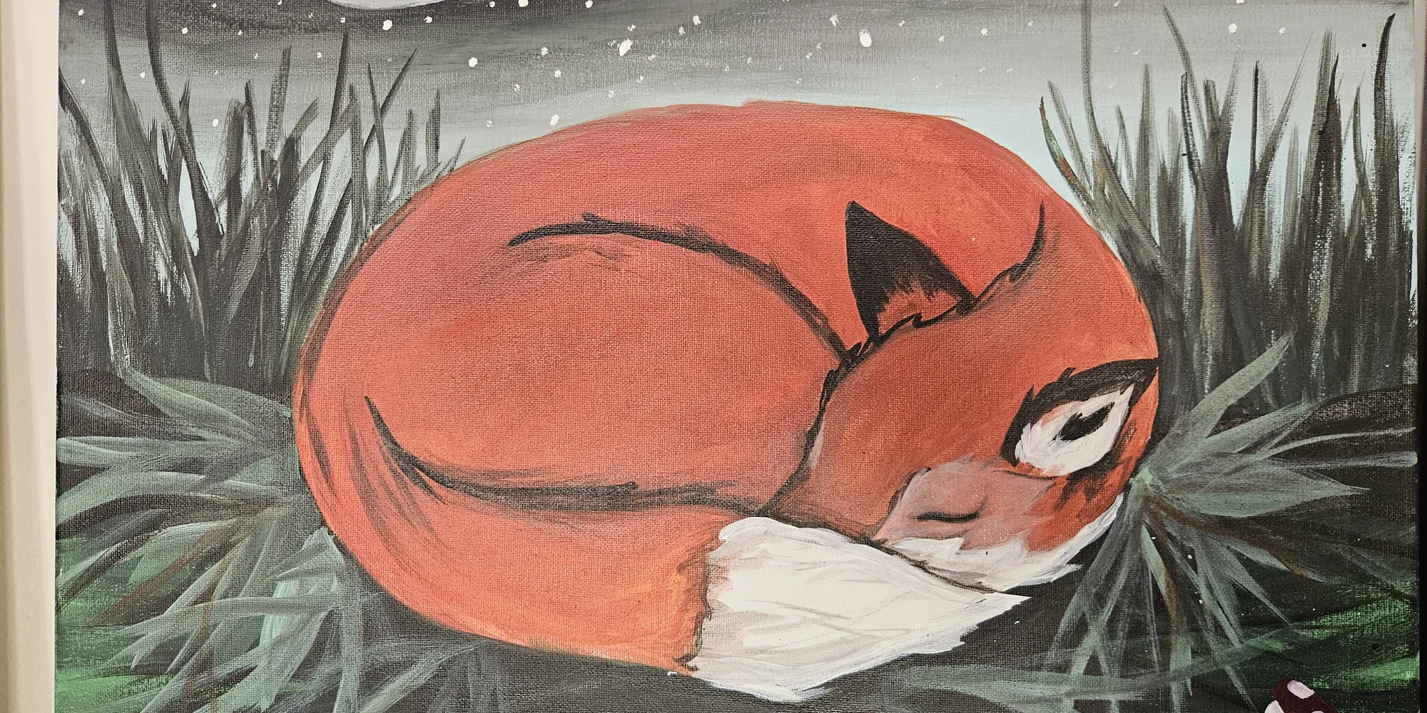 Sleepy time in a summer field. What could be better than that? Join us to paint this cute fox, perfect for hanging up in the Adirondack cabin. Beginner’s welcome!