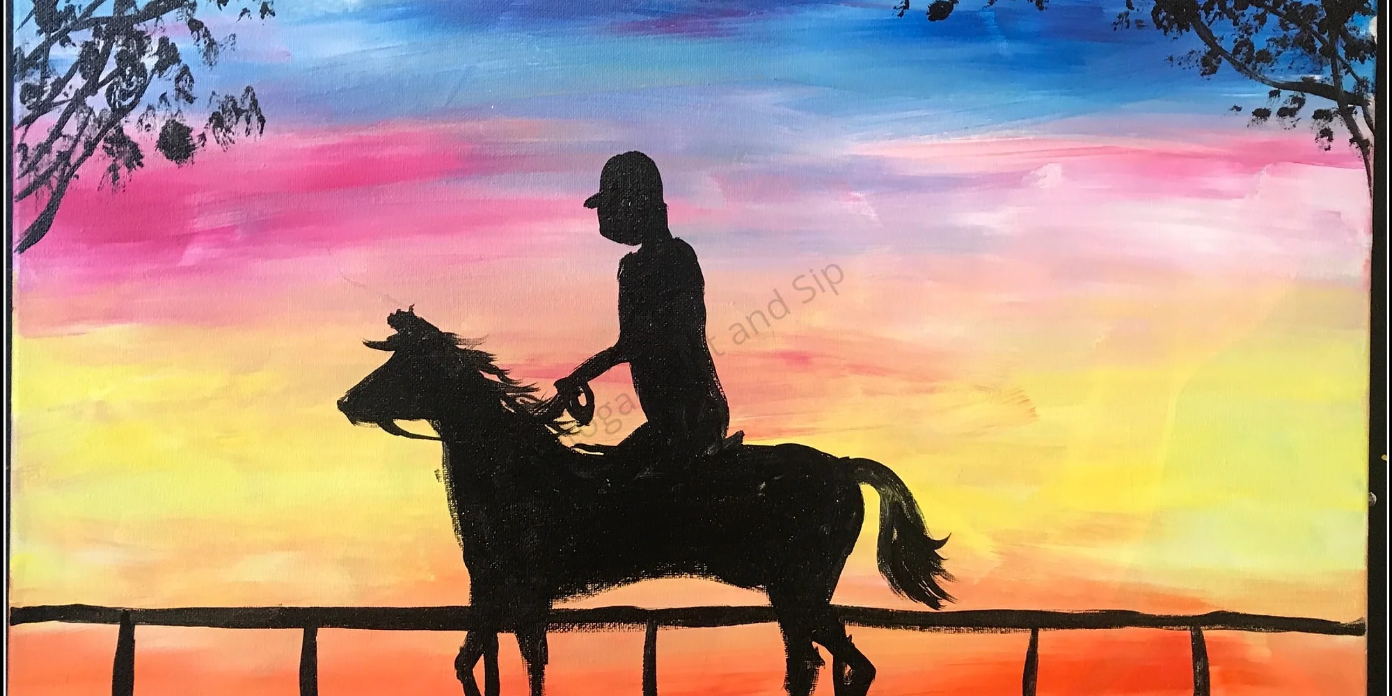 There’s nothing like a quite ride at sunset. Easy blending techniques and a horse stencil make this a perfect painting for beginners. All are welcome!