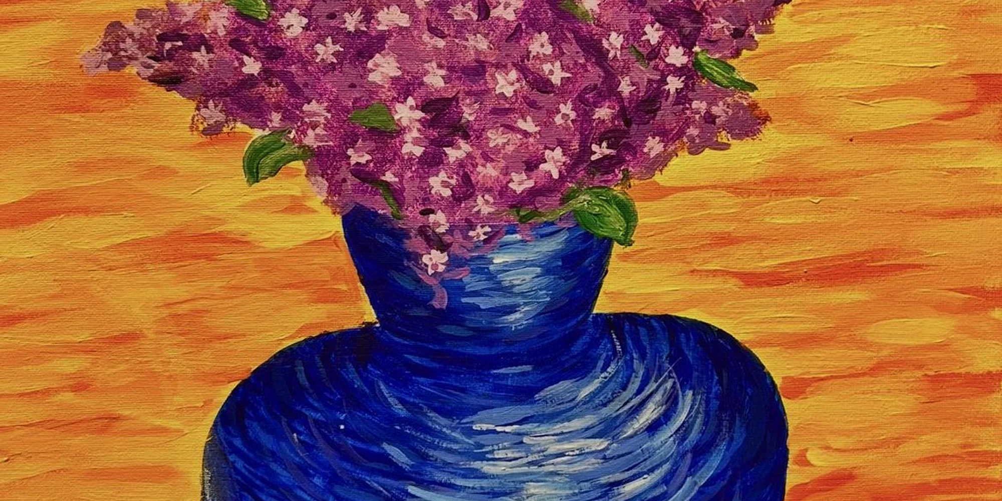 Create a soft yet expressive “paint and drip” piece featuring delicate lilacs arranged in a vase. This session blends gentle purples, greens, and flowing drips to capture the natural beauty and movement of fresh blooms. With guided techniques and room for creativity, you’ll build layers of color and texture, letting the paint drip and blend into a dreamy floral composition.
