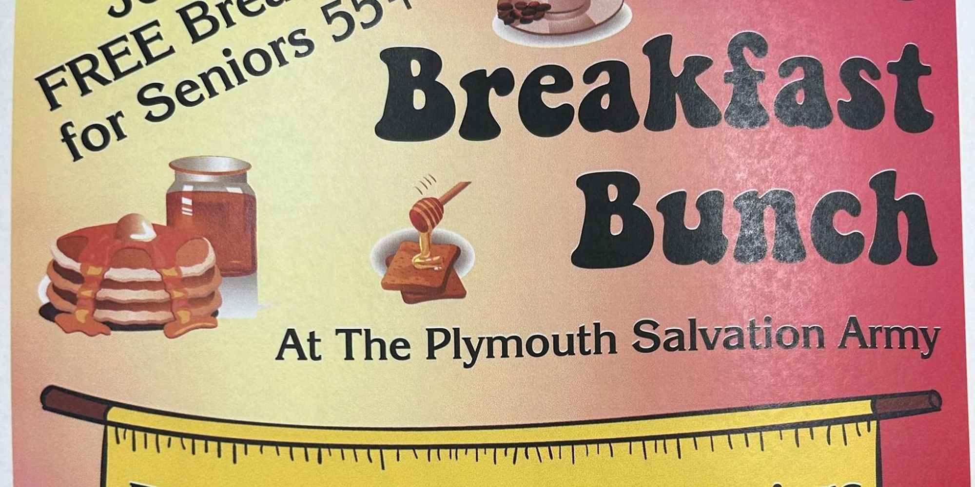 Get ready to gather with friends for our wonderful Senior Breakfast at the Plymouth Salvation Army. Delicious food, great conversation and a warm start to your day. It is always a joy to share a meal and fellowship together with our community. We cannot wait to see your smiling faces.