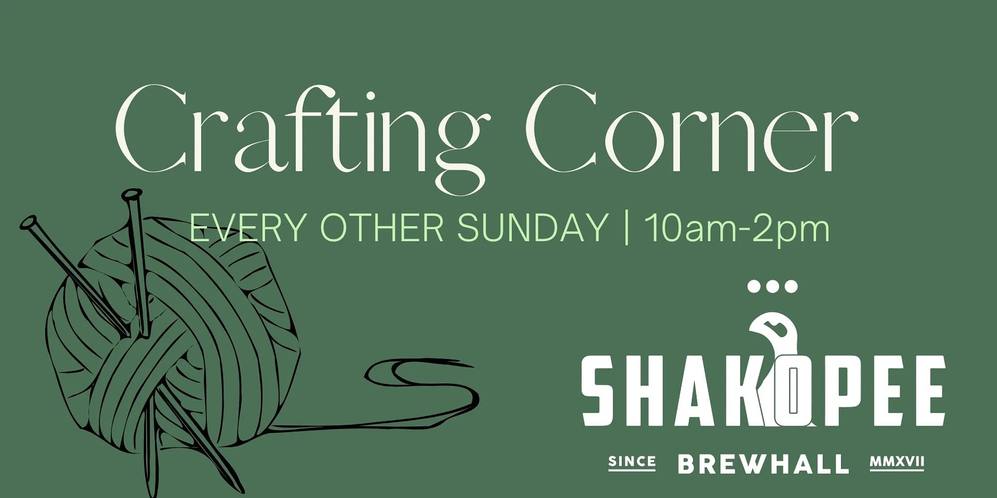 Bring your new crafting hobbies to the taproom and get to know your community! Crafting Corner is built for those that want to meet new people that share similar interests while enjoying a cup of coffee or a pint – no crafts are provided. Cheers & we’ll see you there! #shakocoffee #shakobeer