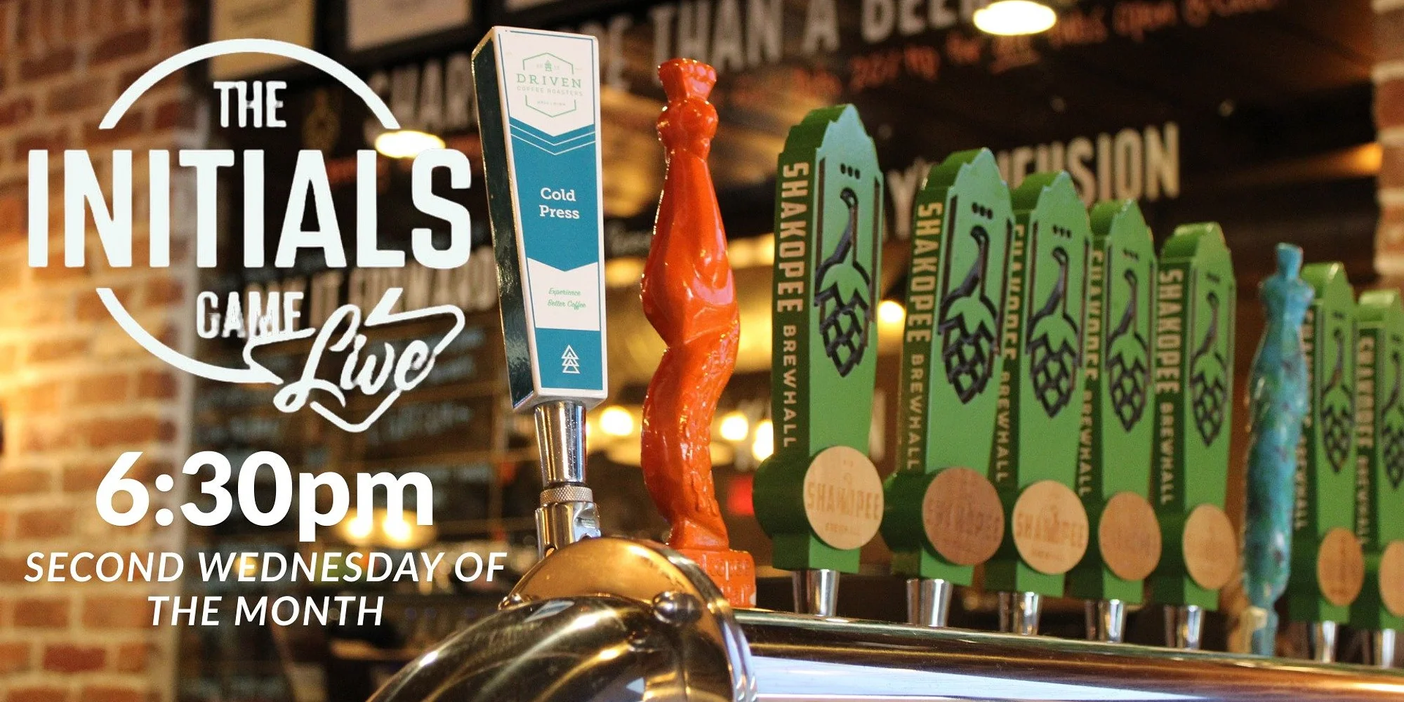 Initials Game LIVE is at the Shakopee BrewHall! Join us every second Wednesday of the month at 6:30pm to play. It’s going to be a fun (& busy) time, so get here early to make sure you get a seat! Cheers & we’ll see you soon! #shakobeer