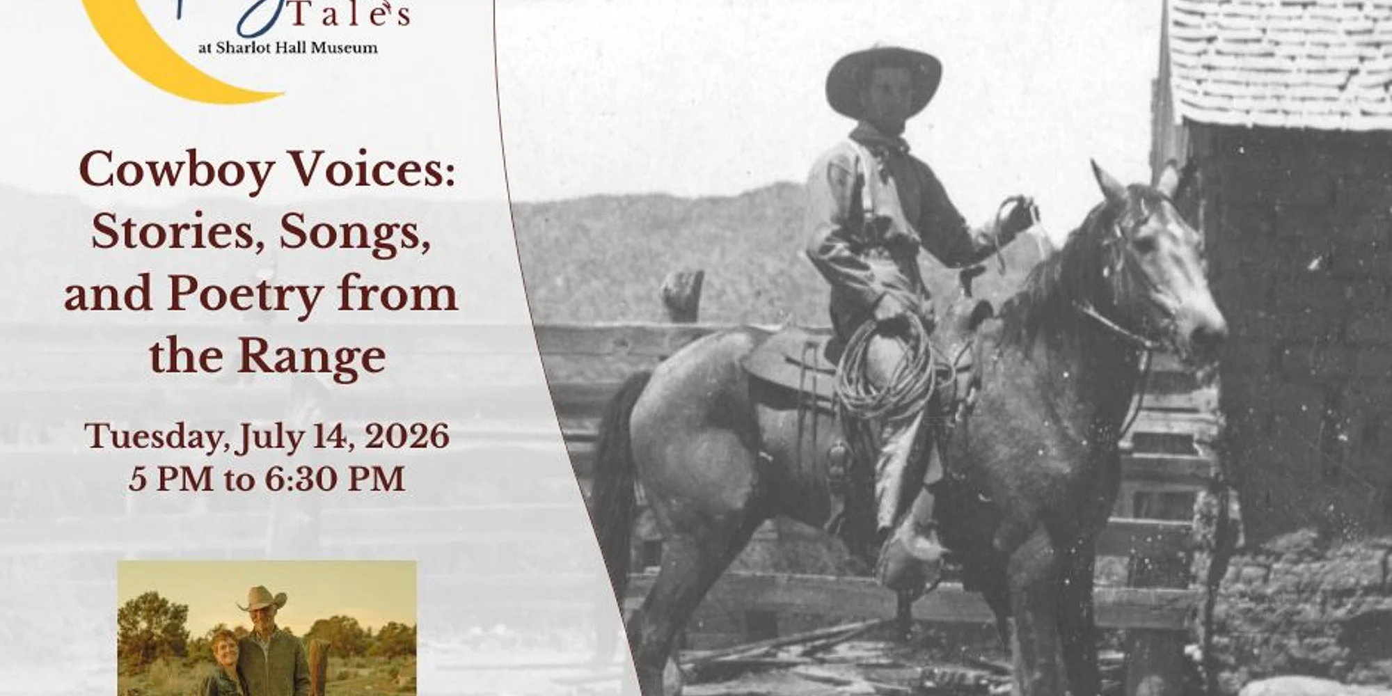 Join Gail Steiger and Amy Hale for an evening of authentic cowboy storytelling, poetry, and music rooted in decades of life on ranches across Arizona, West Texas, and New Mexico. From the rugged peaks of Spider Ranch to remote cow camps, they bring to life the humor, grit, and heart of daily ranching. Blending classic and original cowboy songs with poetry and personal stories, their performance celebrates Western traditions and the land that shapes them—inviting audiences to experience the rhythms, landscapes, and enduring spirit of the West. Gail Steiger and Amy Hale each bring a lifetime of ranching, storytelling, and creative work to the stage. Gail, foreman of Arizona’s 50,000-acre Spider Ranch, was raised on local ranches and comes from a lineage of ranchers and songwriters. His grandfather, Gail Gardner, wrote classic cowboy songs and was named Arizona’s “Poet Lariat.” Gail is also a singer, songwriter, and award-winning filmmaker; his project Ranch Album earned a CINE Golden Eagle award. He shares cowboy stories and music throughout the Southwest and internationally. Amy Hale has spent years raising her children in ranch camps and has worked as a cowboy on Spider Ranch for 18 years. She is an accomplished author of nonfiction, fiction, and poetry. Together, Gail and Amy live the cowboy life that inspires their songs, stories, and writing—offering audiences a rare and genuine glimpse into the modern West. Schedule & Location: Performances are held in the Education Building. Guests will enjoy a light reception at 5:00 PM, followed by the program at 5:30 PM. About Twilight Tales: Twilight Tales is an ongoing evening series that brings history to life through engaging, afterhours programs at Sharlot Hall Museum—each offering a unique approach to storytelling. Tickets & Seating is limited. Tickets are $30 per person. Saddle up with Gail Steiger and Amy Hale Auker for a lively evening of cowboy stories, songs, and poetry straight from the ranch to the stage. Tickets on Sale Soon