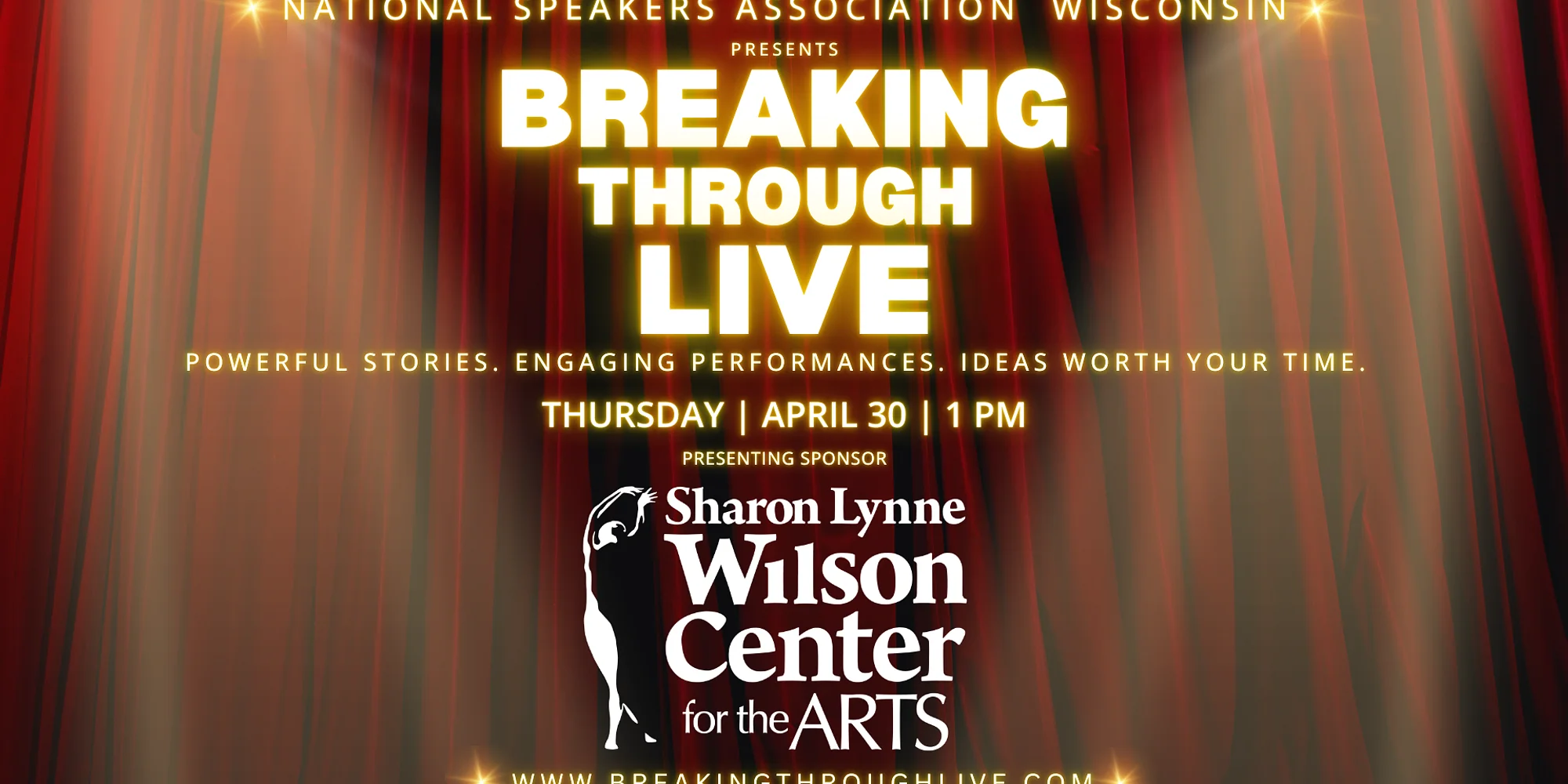 TICKETS presented by the National Speakers Association of Wisconsin Powerful stories, engaging performances, ideas worth your time. Presenting Sponsor: Sharon Lynne Wilson Center for the Arts Step away from the ordinary and spend an afternoon immersed in live storytelling, fresh perspectives, and engaging performances. Breaking Through Live, presented by the National Speakers Association Wisconsin Chapter, brings together 8 to 10 experienced professional speakers for a fast-paced showcase of powerful 15-minute mini-keynotes. Each voice is different. Each message is designed to spark new thinking, meaningful conversation, and moments you will remember long after the curtain closes on the spectacular Sharon Lynne Wilson Center for the Arts stage. This is not a traditional lecture or conference. It is a dynamic, variety-style experience where the energy shifts with every speaker. Expect insight paired with entertainment, thoughtful ideas delivered with personality, and an atmosphere that keeps the afternoon moving. Come curious. Leave energized. Reception to follow for Event Industry Partners Why Attend If you enjoy live performances that make you think, laugh, and see familiar challenges in a new way, this afternoon is for you. Breaking Through Live offers a rare opportunity to hear multiple professional speakers on one stage, each bringing their own stories, styles, and perspectives. It is an easy way to refresh your thinking, gather new ideas, and enjoy a live event that feels both meaningful and fun. For Event Industry Professionals Meeting professionals, association leaders, HR teams, and others who hire speakers are invited to attend as guests of the chapter, with a reception following the showcase. Experience multiple seasoned speakers in one afternoon and see how they connect with a live audience, far beyond what a demo reel can show. One lucky guest will receive a keynote giveaway valued at up to $25,000. Event industry partners can reach out to Eliz Greene(eliz@elizgreene.com) for guest registration details. Bring Your Group Some events are better experienced together, and Breaking Through Liveis one of them. Gather your team, invite your network, or plan a midweek outing with friends. The fast-paced lineup keeps you engaged, and every presentation gives your group something new to talk about on the drive home. Contact Eliz Greene (eliz@elizgreene.com) now if your group is 10 or more to unlock special group pricing and reserve your seats together.Sharon Lynne Wilson Center for the Arts patrons, use your code for discounted tickets.Reserve your seat now and be part of an afternoon where powerful stories, engaging performances, and ideas worth your time take center stage.
