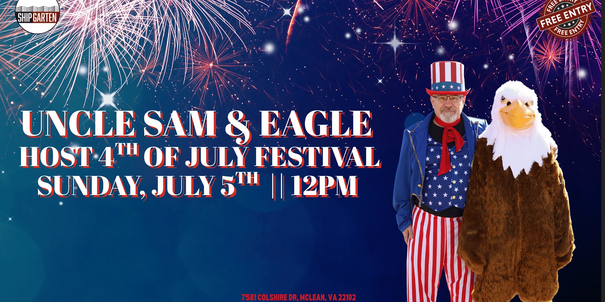 Stars, stripes, and family fun await at Shipgarten! 🇺🇸✨ Join us on **July 5th** for our **Family 4th of July Festival**, hosted by none other than **Uncle Sam** and his patriotic Eagle sidekick! Get ready for a red, white, and blue celebration packed with excitement for all ages. ***Shipgarten opens at 11 AM & the festival runs from 12 PM until 6 PM. Restaurants close at 2 AM*** EVENT SCHEDULE: 12:00 – 6:00 PM – Face Painting, Moonbounces, and Arts & Crafts 12:00 – 3:00 PM – Live Magic Performance by Jake the Great 3:15PM – Live Performance by Uncle Sam and the Eagle But that’s not all! we offer (2) 155″ TV Walls, 8 TVs, 2 outdoor projectors, and 3 indoor projectors, ensuring you won’t miss any of the big games.Shipgarten Offers: 2 Moon Bounces 2 Playground Sets Photo Booth with Accessories Kids’ Corner with Face Painting, Crafts, and More Outdoor Games & Activities Giveaways, Competitions & Prizes Dog-Friendly Atmosphere Bier & Samples Great Food Throw on your stars and stripes and bring the whole crew out for a star-spangled celebration you won’t want to miss. Let freedom (and fun!) ring at Shipgarten! 🇺🇸