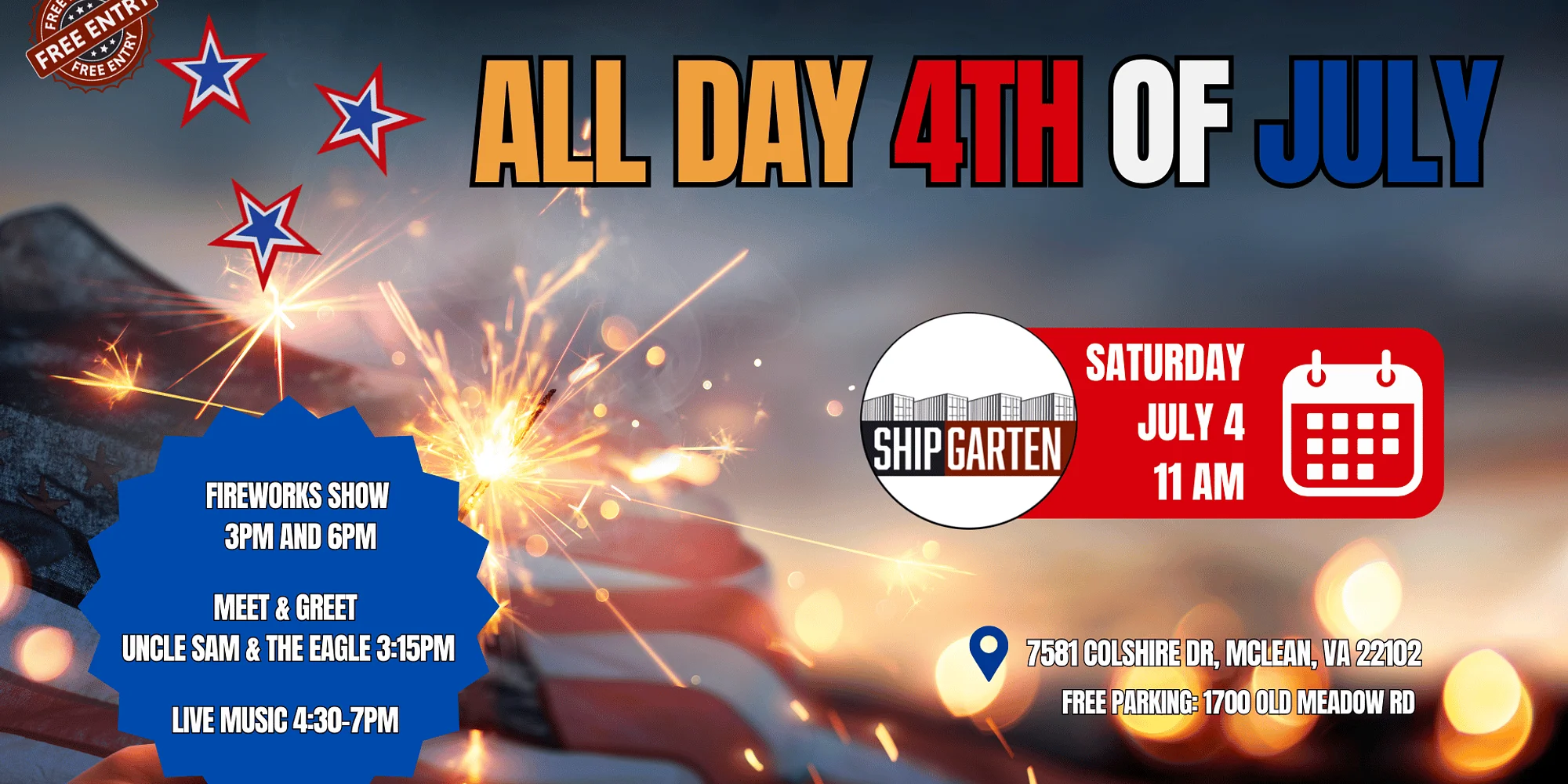 🇺🇸 All-Day 4th of July Celebration at ShipGarten 🇺🇸 Celebrate Independence Day the right way — all day long at ShipGarten! Join us for an unforgettable 4th of July celebration packed with food, drinks, music, and nonstop summer vibes in our open-air bier garden. From daytime family fun to high-energy evening festivities, we’re bringing the ultimate red, white, and brew experience. Throw on your stars and stripes, bring your friends and family, and spend the holiday soaking up sunshine, cold drinks, and great company. ***Shipgarten opens at 11 AM. The restaurant closes at 2 AM*** EVENT SCHEDULE: 2:00 PM: Potato Sack Race 3:15 PM: Water Pong Tournament 4:30 PM: Cornhole Tournament ♫ 8 PM – 2 AM Shipgarten After Dark ft. DJ Bianca Diamond💎 Shipgarten offers 2-155″ TV Walls, 8 TVs, 3 outdoor projectors & 3 indoor to watch ALL big games! ADDITIONALLY: ➳40+ beer & cider samples from local breweries to choose from ➳ Photo Booth with Accessories ➳ Great food ➳ Hot Drinks Menu ➳Dog Friendly (Check out our Dog menu, play in the dog park, or just bring your pup along) ➳ Outdoor Games & Activities ➳ Giveaways, Competitions & Prizes ➳ Kids Corner with Face Painting, Moon Bounce, Crafts and more!