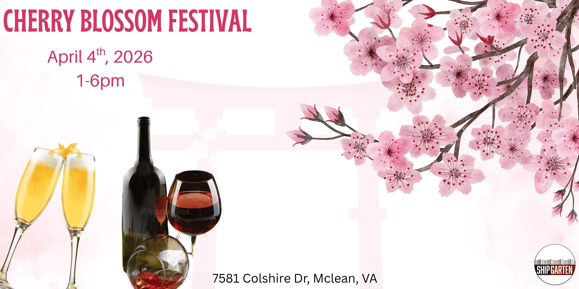 🌸 Cherry Blossom Festival at ShipGarten 🌸 Step into spring in full bloom at ShipGarten’s Cherry Blossom Festival — a dreamy day filled with florals, wine, and sparkling mimosas 🍷🥂 Celebrate the beauty of cherry blossom season in our open-air bier garden transformed with soft pink décor, fresh spring vibes, and the perfect backdrop for sipping and socializing. Whether you’re planning a girls’ day out, brunch with friends, or just looking for a picturesque afternoon, this is your sign to join us. EVENT SCHEDULE: 3:00 Water Balloon Toss (Winning Team $25 Gift Card!) 4:00 Cornhole Tournament (Bracket-style, Winning Team Wins $50 Gift Card!) 5:00 Candy Chopstick Challenge (Winner $25 Gift Card!) ✨ What to Expect: • Wine specials & curated selections • Mimosa bar with fresh juices & bubbly • Floral décor & photo-worthy moments • Live music or DJ vibes • Delicious bites to pair with your sips Throw on your florals, grab your friends, and toast to the season under the blossoms 🌸🥂 Sip, stroll, and soak in the beauty of spring — only at ShipGarten.