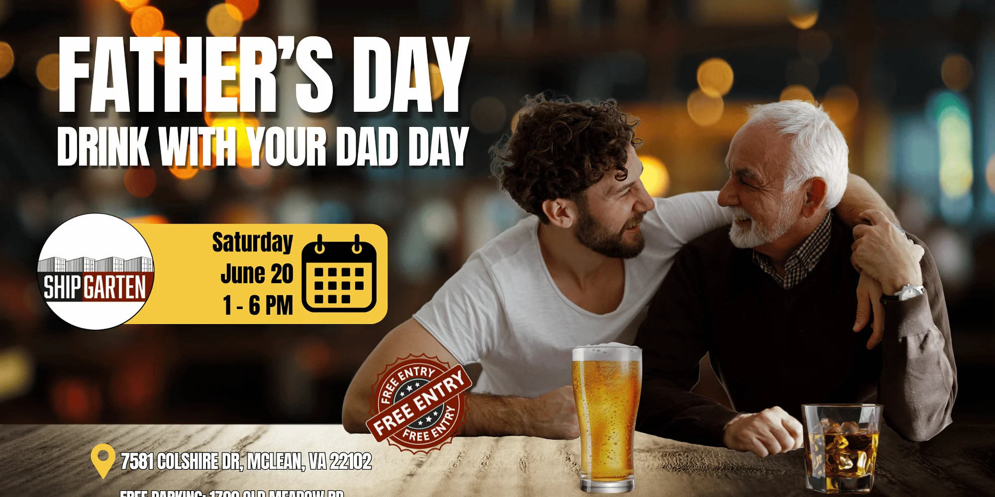 🍻 Drink With Your Dad Day at ShipGarten 🍻 This Father’s Day, skip the socks and give Dad what he really wants — a cold drink and a good time. Join us at ShipGarten for Drink With Your Dad Day, a laid-back celebration dedicated to dads, father figures, and the legends who taught us how to grill, fix things (kind of), and tell the same stories over and over. Whether you’re bringing your dad, celebrating a new dad, honoring a father figure, or you are the dad — this day is all about raising a glass together. Make it a tradition. Grab a seat, grab a beer, and make some memories. Because nothing says bonding like “one more round.” 🍻 See you at ShipGarten for Drink With Your Dad Day!