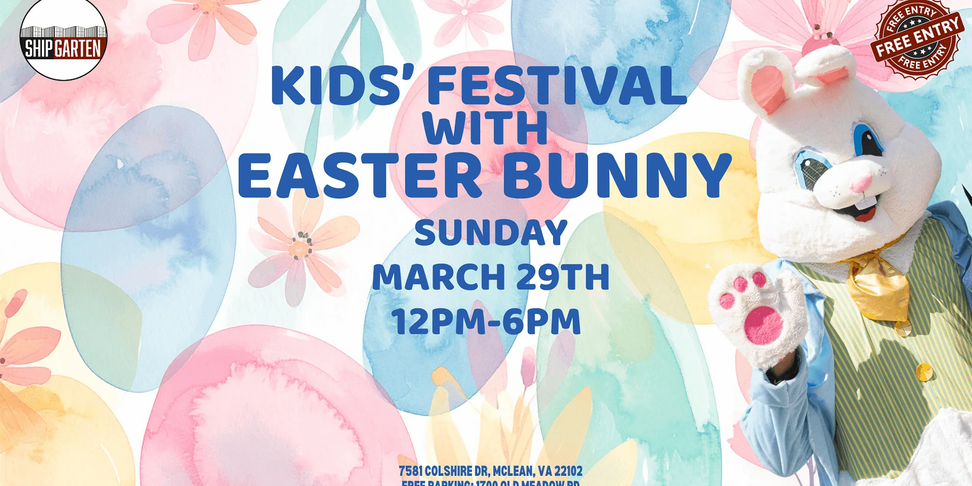 Join us on March 29th as we invite you to enjoy a day of excitement as we are having The Easter Bunny Host the kids & family festival! Step into a world of family-friendly fun at Shipgarten, Tysons Corner, the top restaurant for families! Join us on Sunday, March 29th , from 12 PM to 6 PM, as we invite you to enjoy a day of excitement as we are having The Easter Bunny Host the Kids and Family Festival. Bring the whole family for an unforgettable experience! For your little ones Shipgarten has face painting and arts & crafts, allowing their creativity to shine. The fun doesn’t stop there – we’ve got live music, great drinks, moonbounces, and a full outdoor playground to ensure everyone has a blast. Dogs are more than welcome at Shipgarten, whether on-leash or in our off-leash dog park. Treat your furry friends to Pup Cups and Kongs filled with peanut butter for a delightful family treat. ***Shipgarten opens at 11 AM & the festival runs from 12 PM until 6 PM. Restaurants close at 2 AM*** EVENT SCHEDULE: 12:00 – 6:00 PM – Easter Egg Hunts (40 kids per round until we run out of eggs)(Bring your own Easter basket) 12:00 – 6:00 PM – Face Painting, Moonbounces, and Arts & Crafts 12:00 – 3:00 PM – Live Magic Performance by Jake the Great Photos with the Easter Bunny But that’s not all! we offer (2) 155″ TV Walls, 8 TVs, 2 outdoor projectors, and 3 indoor projectors, ensuring you won’t miss any of the big games.Shipgarten Offers: 2 Moon Bounces 2 Playground Sets Photo Booth with Accessories Kids’ Corner with Face Painting, Crafts, and More Outdoor Games & Activities Giveaways, Competitions & Prizes Dog-Friendly Atmosphere Bier & Samples Great Food FREE PARKING 1700 Old Meadow Road, McLean, VA 22102 Parking is conveniently located five minutes away by foot and we offer a completely free, pet friendly, and complimentary Shuttle Bus service that runs on a continuous loop to and from the venue and parking lot! Shuttle bus hours: Weekdays 3pm-close Weekends 11am-close Shuttle rides can be requested outside of continuous service hours by calling or texting(703)-712-7481