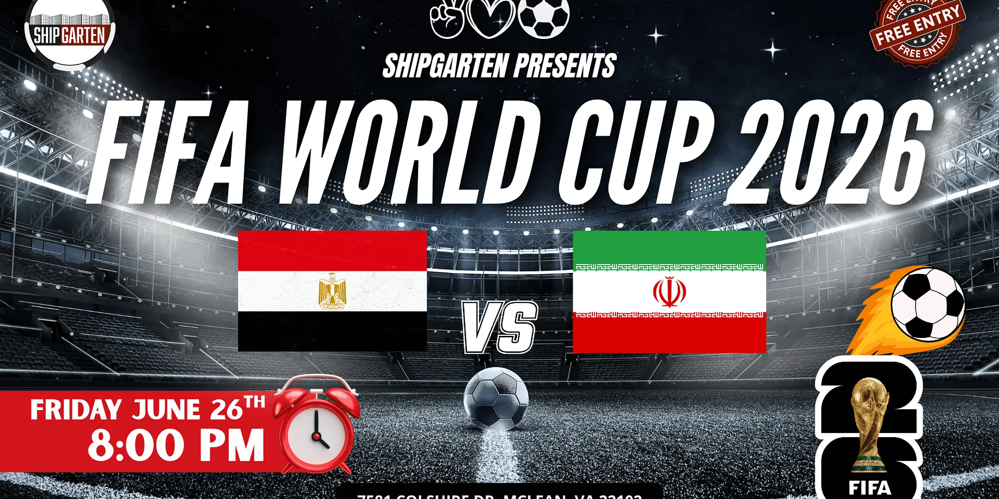 ⚡ FRIDAY NIGHT. HISTORY VS INTENSITY. Egypt brings legacy, pride, and relentless passion. Iran brings discipline, structure, and tactical fire. 8PM kickoff. Prime time energy. Shipgarten becomes the biggest World Cup watch party in Tysons. 🔥 THIS IS HOW YOU WATCH A FRIDAY NIGHT MATCH You show up early. You grab a cold one. You don’t miss a goal. Massive screens & stadium-level sound $40 Mix & Match Beer Buckets (5 – 16oz cans) 100+ beer varieties available All ages welcome (21+ to drink) The most energetic World Cup crowd in Tysons This isn’t background noise. It’s full matchday atmosphere. 🏆 PASSION MEETS PRECISION Egypt’s attacking energy. Iran’s defensive discipline. Friday night at 8PM means high stakes, loud reactions, and late celebrations. Come early. Stay late. Celebrate big. 📍 GAME DAY DETAILS 📅 Friday, June 26th 🕛 Kickoff: 8:00 PM 📍 Shipgarten – 7581 Colshire Dr, McLean, VA 22102 🚗 FREE & large parking at 1700 Old Meadow Rd 🎟 FREE ENTRY – Pay only for what you consume 🍻 Coming with your crew? Upgrade your match day. More Info Click Here The biggest crowd. The coldest beer. The loudest World Cup in Tysons.