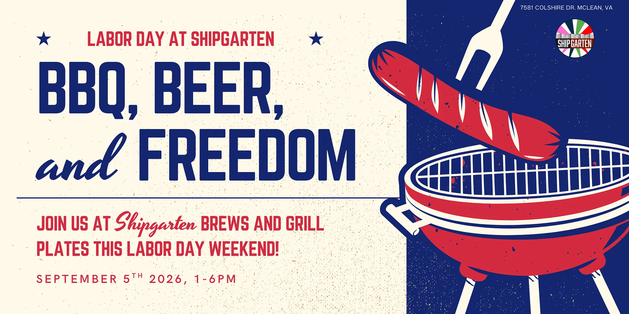 🇺🇸 Labor Day Grill Out Party at Shipgarten 🔥 Close out summer the right way at Shipgarten’s Labor Day Grill Out Party — a full day of great food, cold drinks, and unbeatable vibes. We’re firing up the grill and serving all your cookout favorites, ice-cold beers, craft cocktails, and festive Labor Day specials all day long. Bring your friends, your family, and your appetite — this is how you send summer off in style. What to Expect: 🔥 Fresh-off-the-grill classics 🍺 Beer specials & seasonal cocktails 🎶 Live music / DJ entertainment 🌭 Outdoor games & backyard party vibes 🌞 The perfect end-of-summer atmosphere Whether you’re here for the food, the drinks, or just a laid-back holiday celebration, Shipgarten is the place to be this Labor Day. Come early. Stay late. Celebrate big. We’ll see you at the grill.