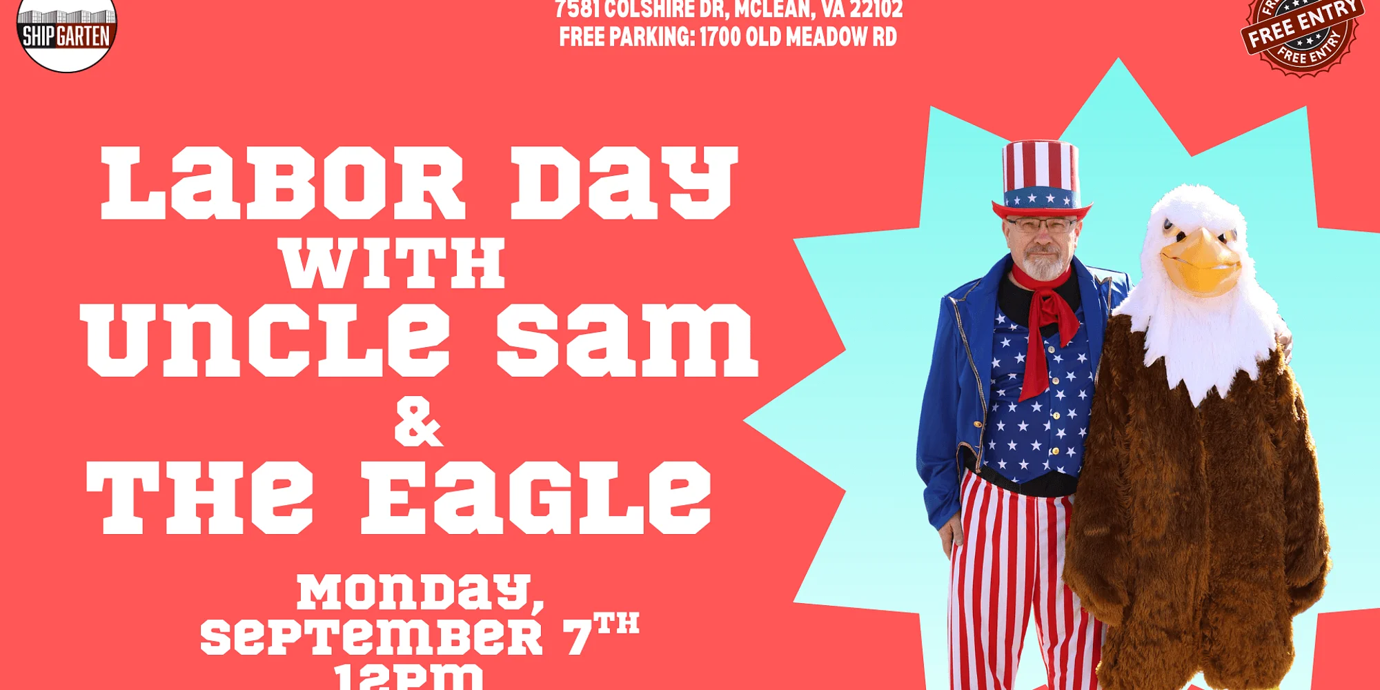 Red, white, and brew! 🇺🇸🍻 Celebrate **Labor Day** in star-spangled style at Shipgarten with special appearances by **Uncle Sam** and his patriotic Eagle sidekick! Join us for a full day of festive fun, family-friendly entertainment, great food, cold drinks, and all-American vibes as we toast to the long weekend the right way. 🎉 Patriotic photo ops 🎶 Live entertainment 🍔 Delicious eats 🍺 Ice-cold drinks 🎈 Fun for the whole family Throw on your red, white, and blue and spend Labor Day celebrating with us at Shipgarten — where the freedom (and the fun) never stops! 🇺🇸✨