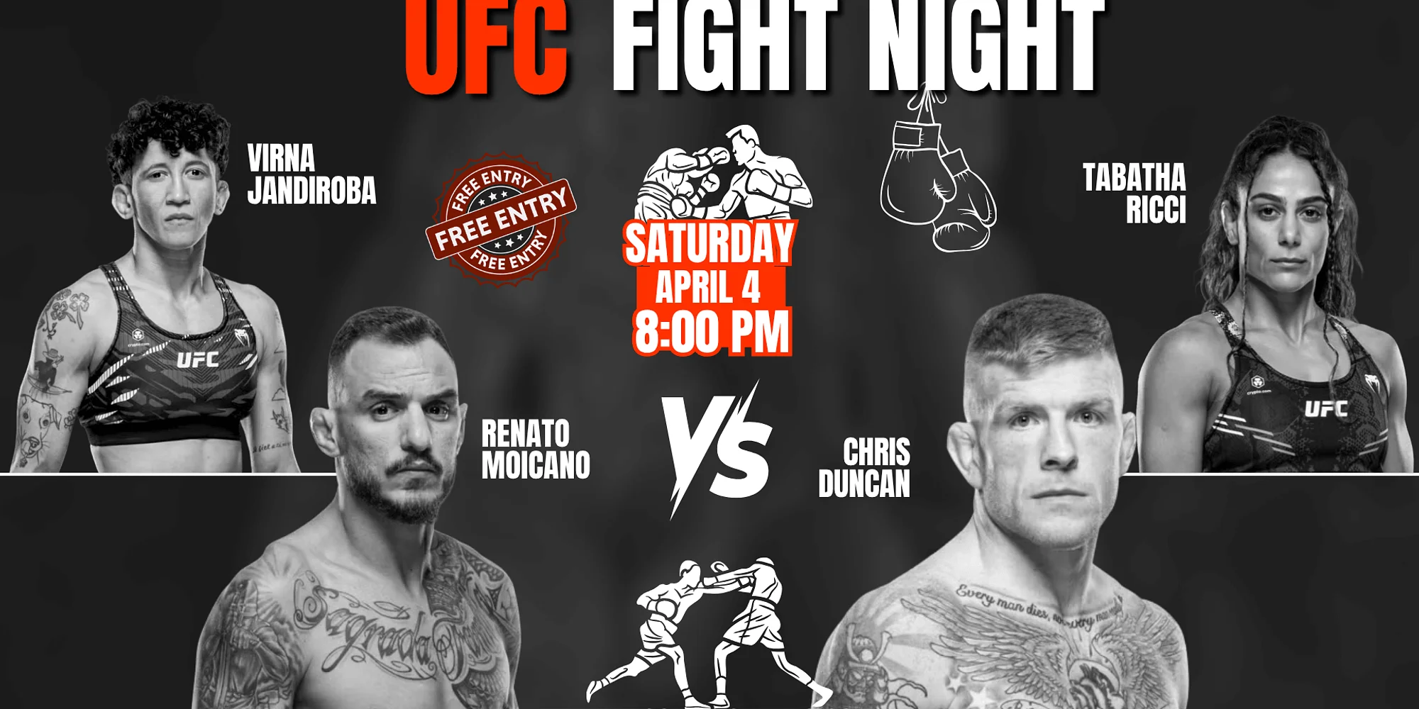 ⚡ SATURDAY NIGHT FIGHTS ARE HERE Moicano vs Duncan takes over the cage. Striking, pressure, and nonstop action. Shipgarten becomes the ultimate UFC watch party in Tysons. 🥊🔥 FREE ENTRY. BIG FIGHTS. FULL ENERGY. 🔥 WHAT TO EXPECT Join us for an action-packed UFC Fight Night Watch Party featuring Renato Moicano vs Chris Duncan. From the first prelim to the main event, this is where fight fans come together for the full experience — loud, intense, and unforgettable. This isn’t a quiet viewing. This is fight night energy. 🥊 MAIN CARD HIGHLIGHTS 🔥 Renato Moicano vs Chris Duncan 🔥 Virna Jandiroba vs Tabatha Ricci 🔥 Plus a stacked fight card with rising contenders and fan favorites Every round matters. Every strike hits harder on the big screen. 🔥 THE SHIPGARTEN EXPERIENCE Massive LED screens & stadium-level sound $40 Mix & Match Beer Buckets (5 – 16oz cans) 100+ beers available 4 food concepts in one place Indoor & outdoor viewing areas The biggest fight crowd in McLean / Tysons 🍻 GAME PLAN ✔️ Come early to grab your spot ✔️ Order your drinks & food before the main card ✔️ Stay locked in for every round 📍 EVENT DETAILS 📅 Saturday, April 4rd 🕗 Fights start: 8:00 PM 📍 Shipgarten – 7581 Colshire Dr, McLean, VA 22102 🚗 FREE & large parking at 1651 Old Meadow Road 🎟 FREE ENTRY – Pay only for what you consume 🔥 WATCH IT THE RIGHT WAY No buffering. No small screens. No boring crowd. Just fights, beer, food, and a packed crowd reacting to every hit. 🥊 THE BEST UFC WATCH PARTY IN TYSONS STARTS HERE Bring your crew. Lock in your spot. Don’t miss the main event.