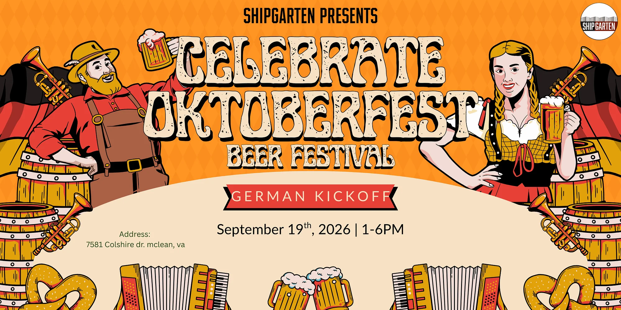🇩🇪🍺 Oktoberfest: German Kickoff at Shipgarten 🥨🎉 Prost! It’s time to kick off Oktoberfest season the right way at Shipgarten. Join us for German Kickoff, our official Oktoberfest celebration packed with authentic German vibes, steins flowing, and high-energy entertainment all day long. We’re bringing the spirit of Munich straight to Shipgarten with traditional brews, festive décor, and a party atmosphere you won’t want to miss. 🍻 What to Expect: 🍺 German beer selections & Oktoberfest specials 🥨 Classic German eats & festival favorites 🎶 Live music / DJ spinning Oktoberfest hits 🇩🇪 Stein hoisting, games & themed fun 🎉 High-energy party vibes from start to finish Dirndls, lederhosen, and festive attire strongly encouraged. Whether you’re here to raise a stein, dance on the benches, or just enjoy the atmosphere, German Kickoff is your official start to Oktoberfest season. Grab your crew and get ready to say Prost all day long. Let the celebration begin 🍺🇩🇪