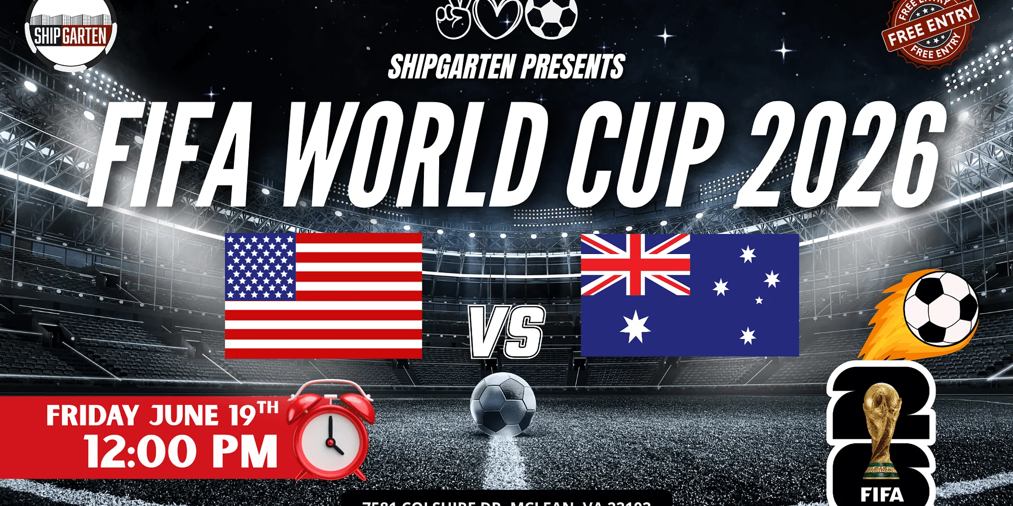 🇺🇸 FRIDAY AT NOON. USA TAKES THE STAGE. World Cup on home soil. Stars and Stripes under the lights. Friday kickoff at 12PM. And there is no bigger place to watch Team USA in McLean / Tysons than Shipgarten. This isn’t a lunch break. This is national pride. 🔥 THIS IS HOW YOU WATCH TEAM USA You wear the jersey. You stand for the anthem. You shout every goal. Massive screens & stadium-level sound $40 Mix & Match Beer Buckets (5 – 16oz cans) 100+ beer varieties available All ages welcome (21+ to drink) The most energetic World Cup crowd in Tysons Cold beer. Big tackles. Bigger goals. If you’re going to watch the World Cup… watch it BIG. ⚔️ FRIDAY ENERGY HITS DIFFERENT USA brings pace, power, and home-soil intensity. Australia brings toughness, pressure, and fearless play. Friday at noon isn’t quiet. It’s the start of the weekend. Arrive early, USA matches fill fast. 📍 GAME DAY DETAILS 📅 Friday, June 19th 🕛 Kickoff: 12:00 PM 📍 Shipgarten – 7581 Colshire Dr, McLean, VA 22102 🚗 FREE & large parking at 1700 Old Meadow Rd 🎟 FREE ENTRY – Pay only for what you consume 🍻 Coming with your crew? Upgrade your match day. More Info Click Here The biggest crowd. The coldest beer. The loudest World Cup in Tysons. https://www.eventbrite.com/e/1983899834811?aff=oddtdtcreator