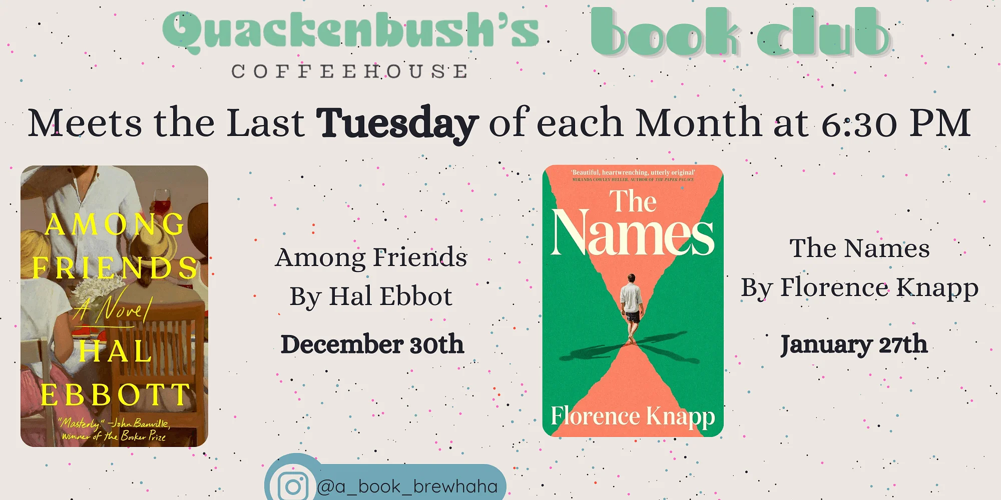 Join us for Book Club. This month we are reading Among Friends by Hal Ebbot Follow us on instagram @a_book_brewhaha for more info! We meet at 6:30 pm to discuss your new favorite book.
