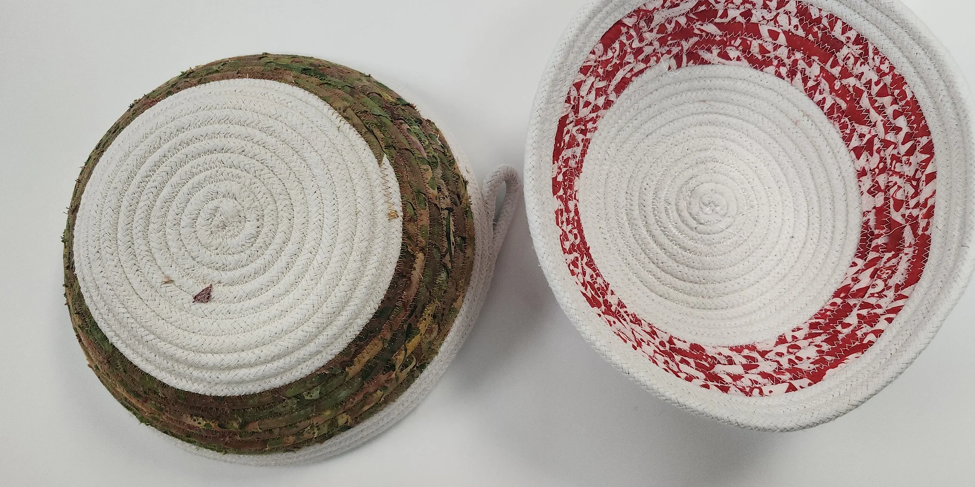 Want to learn how to make your own decorative rope bowl? This beginner’s rope class will teach you the basics to get you started. You will learn how to coil your base, measure the rope, determine the width of your bowl, and how to angle your hands to make the sides. We will talk about strategies to add decorative features, tension on the feeding rope, and how to finish the bowl. Participants will leave the class with a finished bowl and the confidence to make more! These bowls can be used to help with organization or stylish home decor. They also make great gifts!!! Skill Level: Advanced beginner Skill Details: Must have a good working knowledge of your sewing machine and know how to use its features. Materials Included: Rope, fat quarter, instructions, notions Class fee: $60.00 REGISTER HERE!