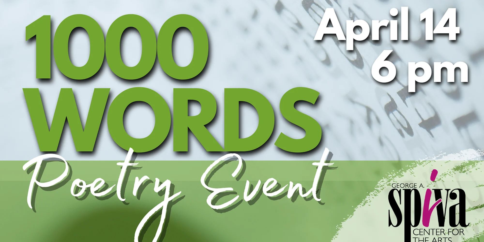 It is said that a picture is worth a thousand words – at Spiva Center for the Arts, that statement rings true as writers are inspired by the images from the PhotoSpiva 2026 exhibit. Join us for Spiva’s annual 1000 Words Poetry and Prose event. Individuals are invited to pick one or two exhibition photos to use as springboards to create original poems or prose. The public is invited to attend the 1000 Words reading where participants will share their work. Readings will be recorded and linked to the corresponding exhibition photos via QR codes. SIGN UP Deadline to sign up is April 13th at 5pm. ONLINE: https://bit.ly/1000Words2026SignUp IN-PERSON: Sign up at the 2nd Floor Gallery Desk READING Thursday, April 14 | 6:00pm | Freeman Health System Main Gallery There is no cost to attend or participate. Please note – poems and essays do not need to be a thousand words in length. For questions, contact Shaun Conroy at sconroy@spivaarts.org or 417-621-9814.