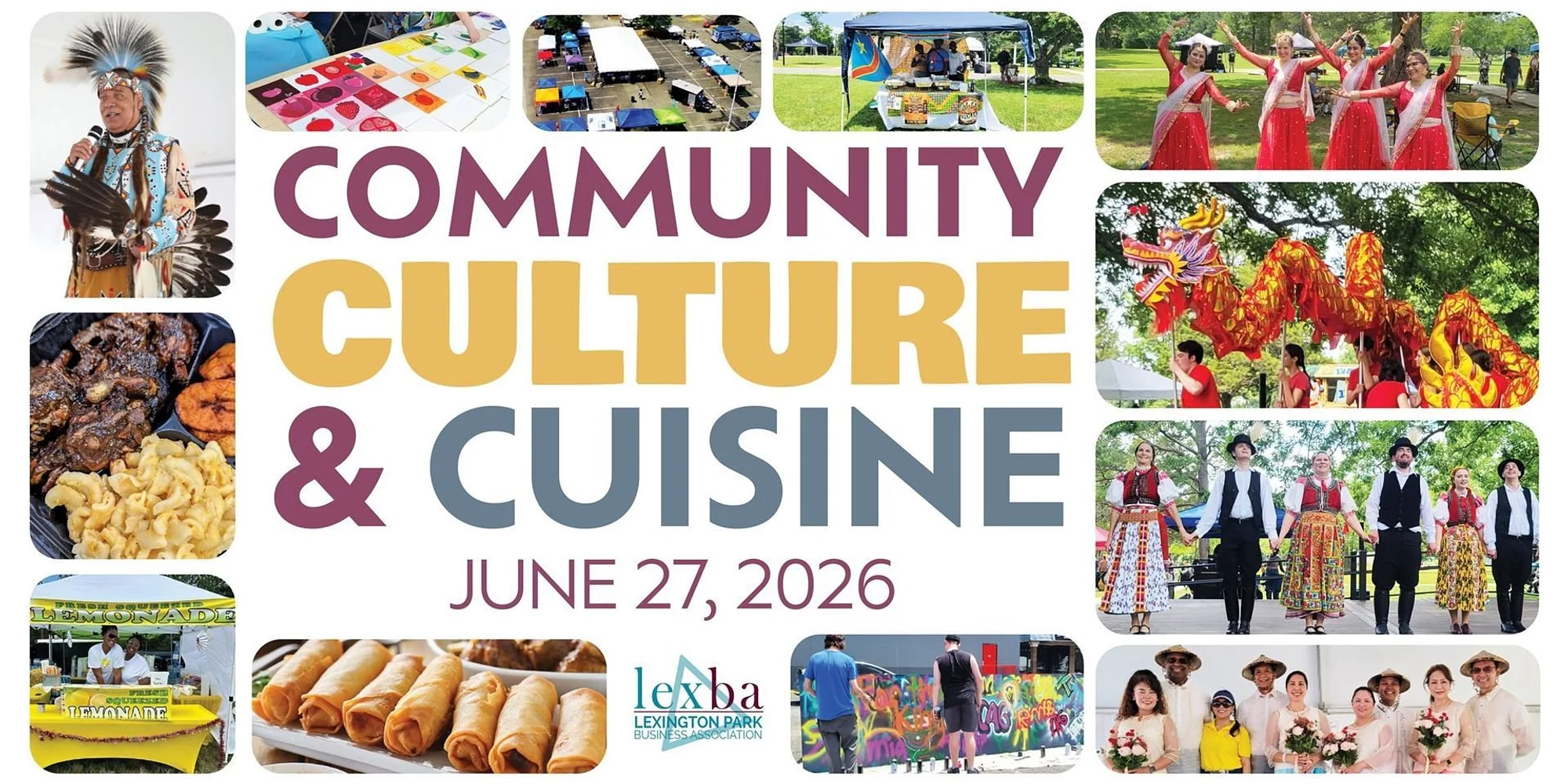 The Lexington Park Business Association hosts entertaining performances from various cultures, an array of activities, interactive crafts, children's games, and more at the Community, Culture & Cuisine event! Food lovers will enjoy cuisines from around the world including jerk chicken from Jamaica, potatoes from Ireland, and everything in between! Join us on June 27, 2026 to celebrate the breadth of the world's cultures right here in Lexington Park! Learn more here. Additional details to follow soon. Sponsored in part by St. Mary’s County Arts Council in partnership with the Lexington Park Business Association, Cedar Point Federal Credit Union, and Devonshire - a Perfect Events Company.