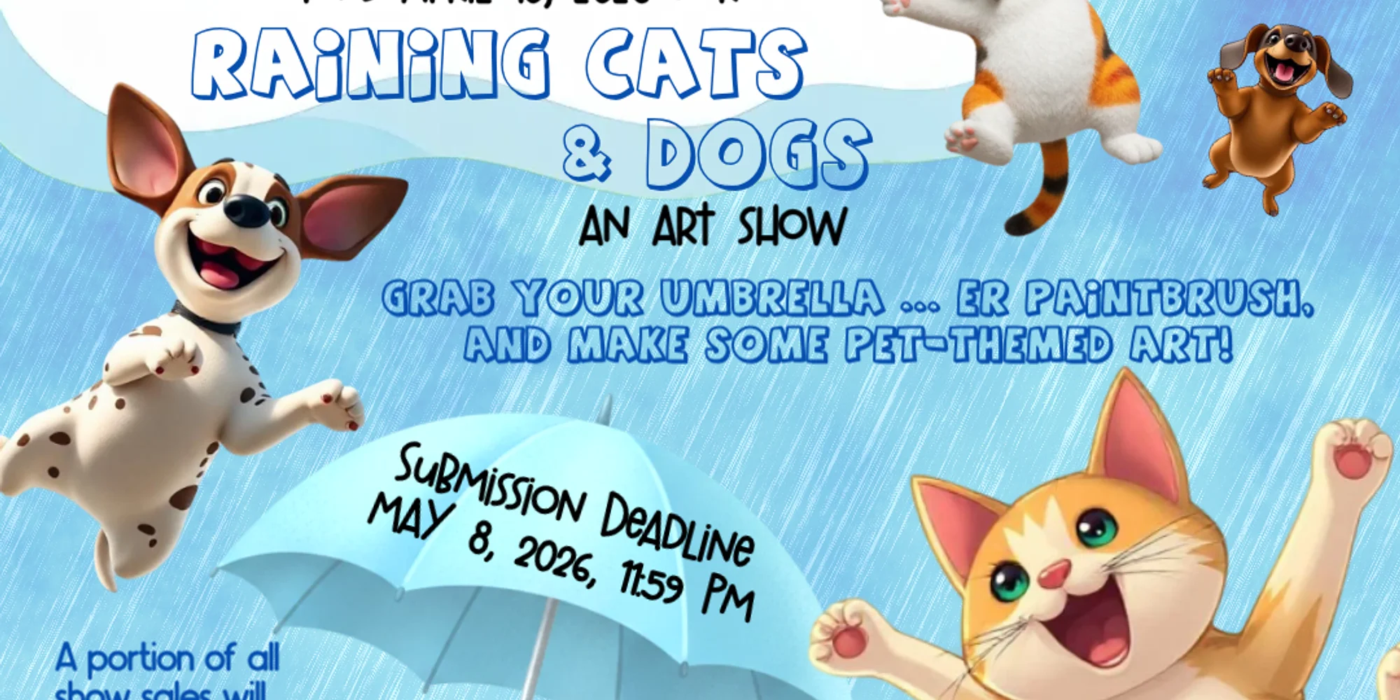 Enter your submission for our upcoming "Raining Cats & Dogs" community art show! Artists of all ages from St. Mary's, Calvert, and Charles counties may submit. A portion of all sales (30%) from this show will be donated to Feral Cat Rescue of Southern Maryland to help the kitties! Feral Cat Rescue of Southern MarylandSee the link below for the full guidelines. The deadline to apply is May 8, 2026 at 11:59 PM. www.smcart.org/animals2026 Artwork will be on display at the St. Mary's County Arts Council Gallery & Gift Shop for the month of June. (22660 Washington St, Leonardtown, MD 20650) Join us for the Opening Reception on First Friday, June 5, 2026 from 5 - 8 PM at St. Mary’s County Arts Council Gallery & Gift Shop. The Color & Light Society of Southern Maryland will host a community activity where attendees can paint and glaze mini cat and dog vases to support Feral Cat Rescue!