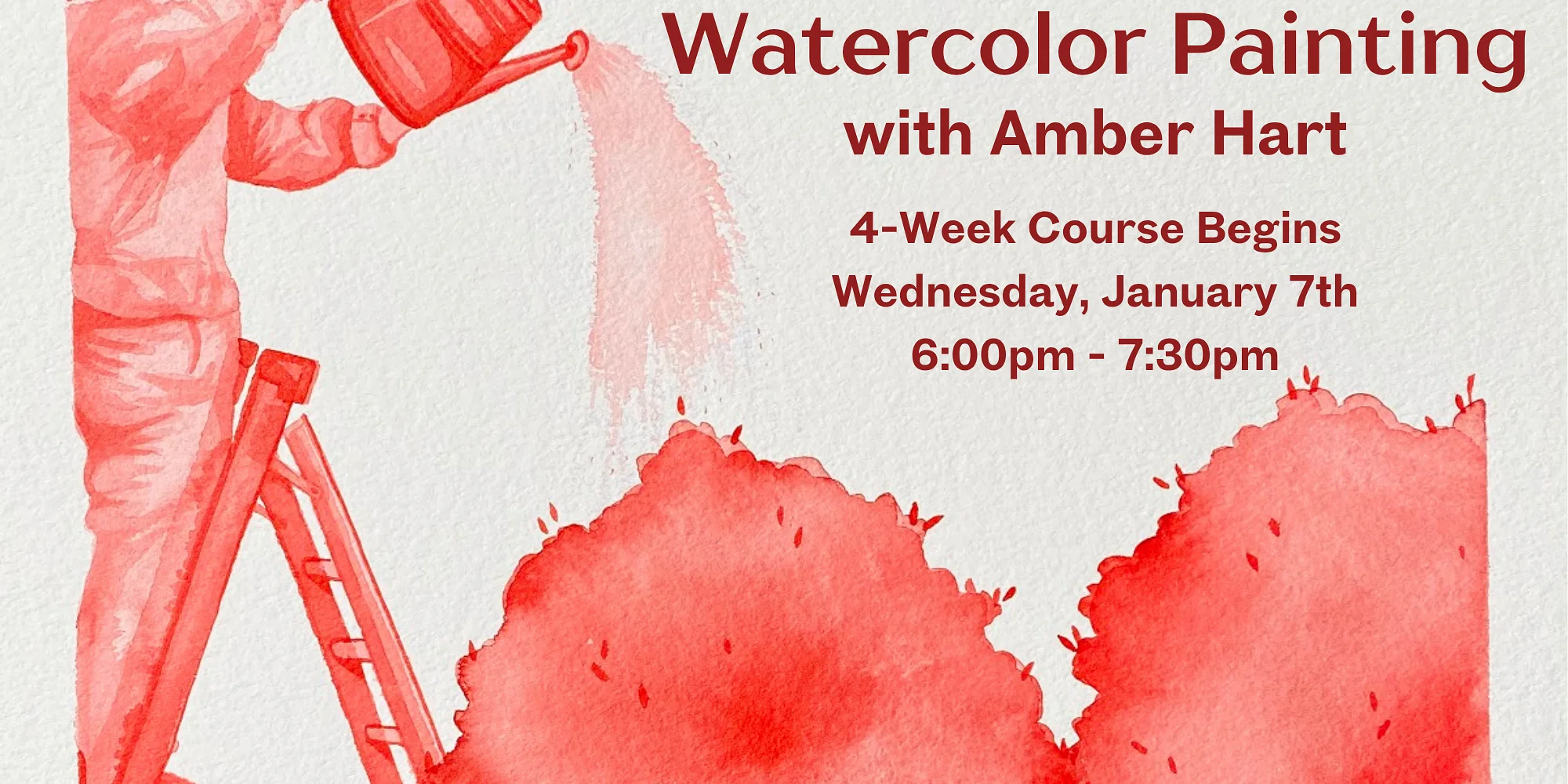 Join us for a watercolor course with the 55th annual summer show first place winner amber hart! This 4-week workshop meets Wednesday, January 7th, 14th, 21st, & 28th from 6:00pm - 8:00pm Looking for the perfect gift for that art lover in your life? Amber Hart’s Watercolor course is the perfect opportunity for any artist to begin their journey! Contemporary Watercolor is a 4-week course exploring the basics of the watercolor medium. Amber will cover different technics in handling the medium, such as wet on wet and blooming, while also investigating art history palettes. At the end of the course, students will walk away with 4 complete watercolor paintings to take home: 1 landscape, 1 still-life, 1 monochromatic, & 1 abstract. Learn more here!