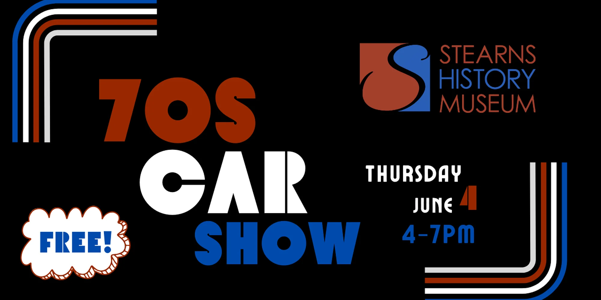 Join us as we kick off our summer season with a 1970s themed car show! We’re marking 50 years since the Bicentennial, and are therefore throwing it back to 1976. Beer and pizza will be available (while supplies last), classic 70s tunes will be blaring, and we will be celebrating the start of the summer! Any car is welcome, but if you’ve got a 70s classic, you’ll be featured! Cost for registering your car is $10, and if you’d like to sign up ahead of time just contact Caitlin at ccarlson@stearns-museum.org, or call the museum at 320-253-8424. There is no cost to you for attending this event- so we hope to see you there!