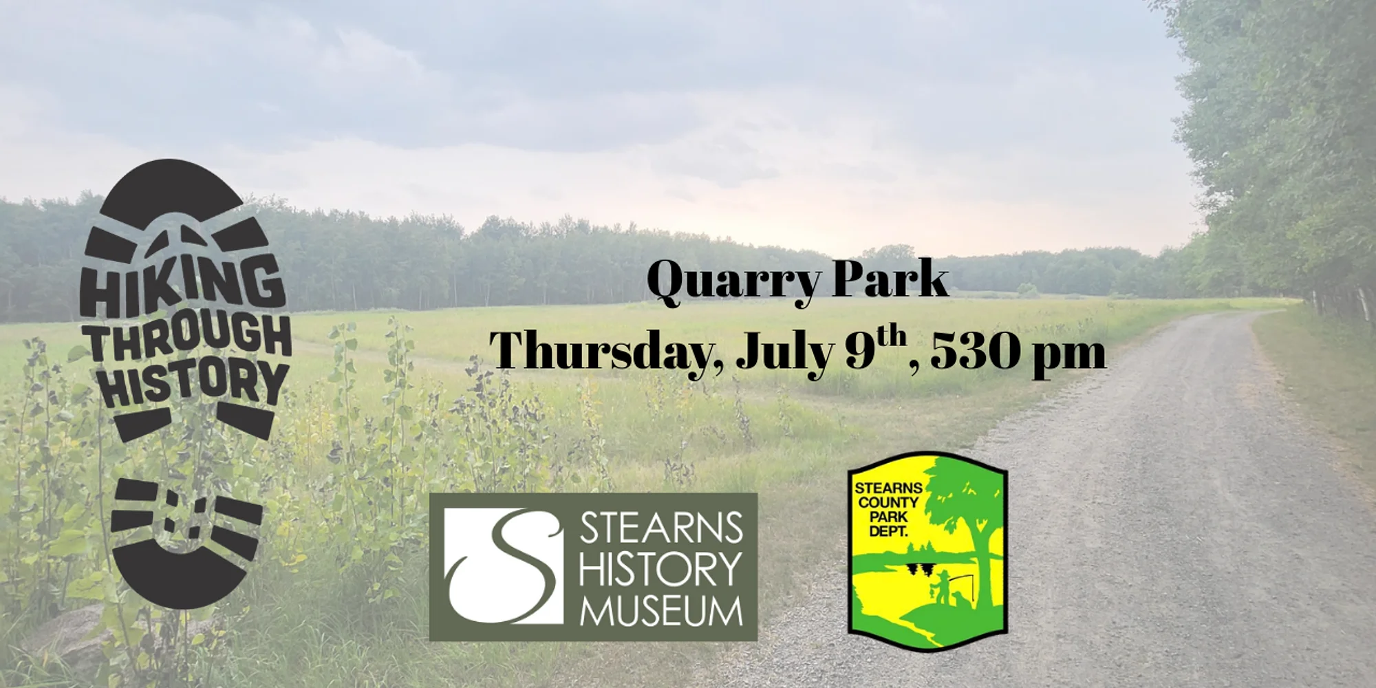 Join the Stearns History Museum and Stearns County Parks this summer as we hike through some of Stearns County’s most beautiful parks, learn about the natural wonders and ecosystems found there, with some history sprinkled in. These walks will be between 1 and 1.5 miles and fairly gentle, but bring your walking shoes! This program is free to the public