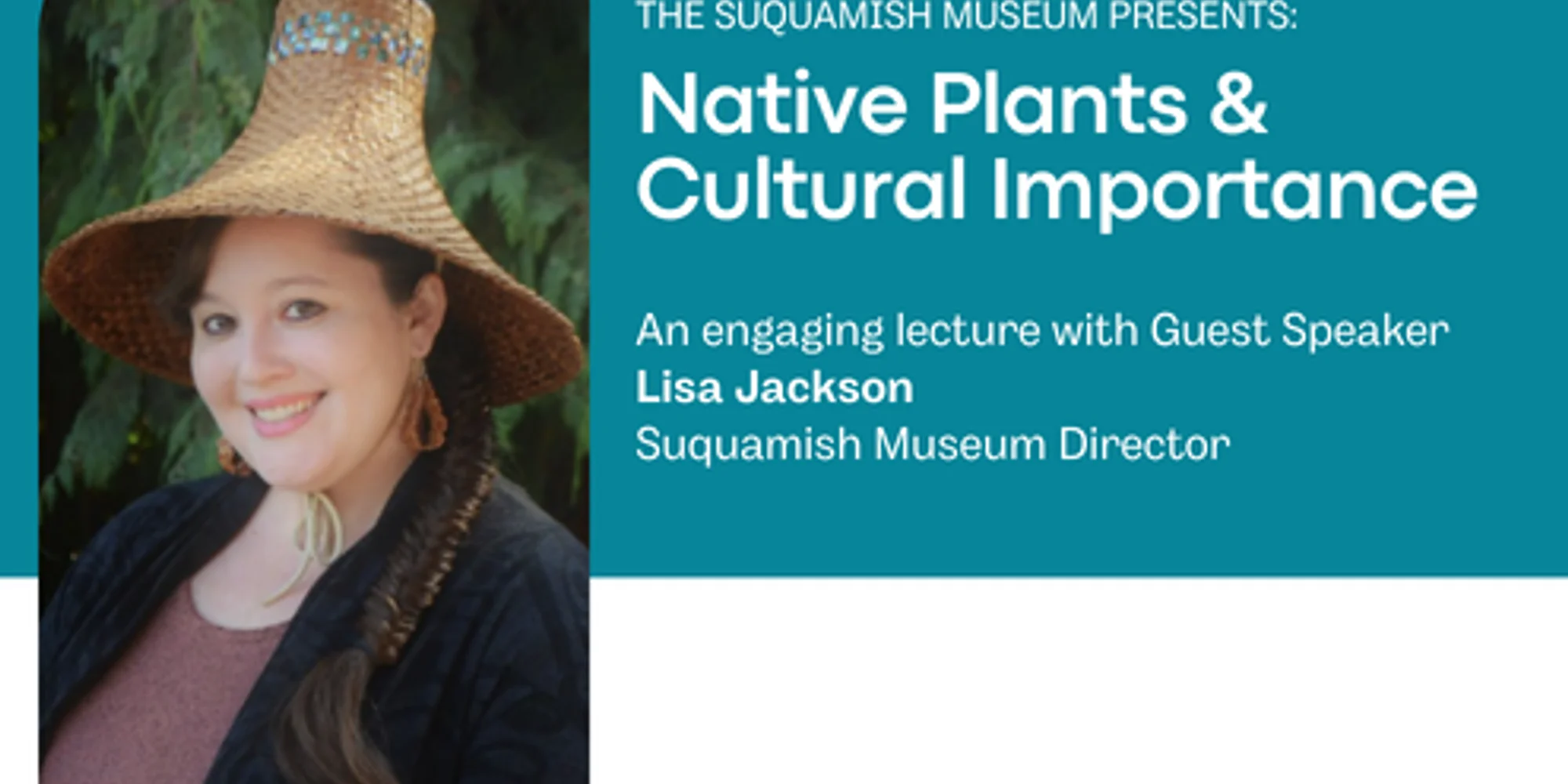 @ Join us for an inspiring and educational talk exploring the cultural significance of native plants in our region. Guest speaker and Museum Director, Lisa Jackson will share insights into traditional knowledge, community connections, and the enduring importance of native plant stewardship. Seating is limited and registration is required Register at museum@suquamish.nsn.us or (360) 394-7105 Add to calendar Google Calendar iCalendar Outlook 365 Outlook Live