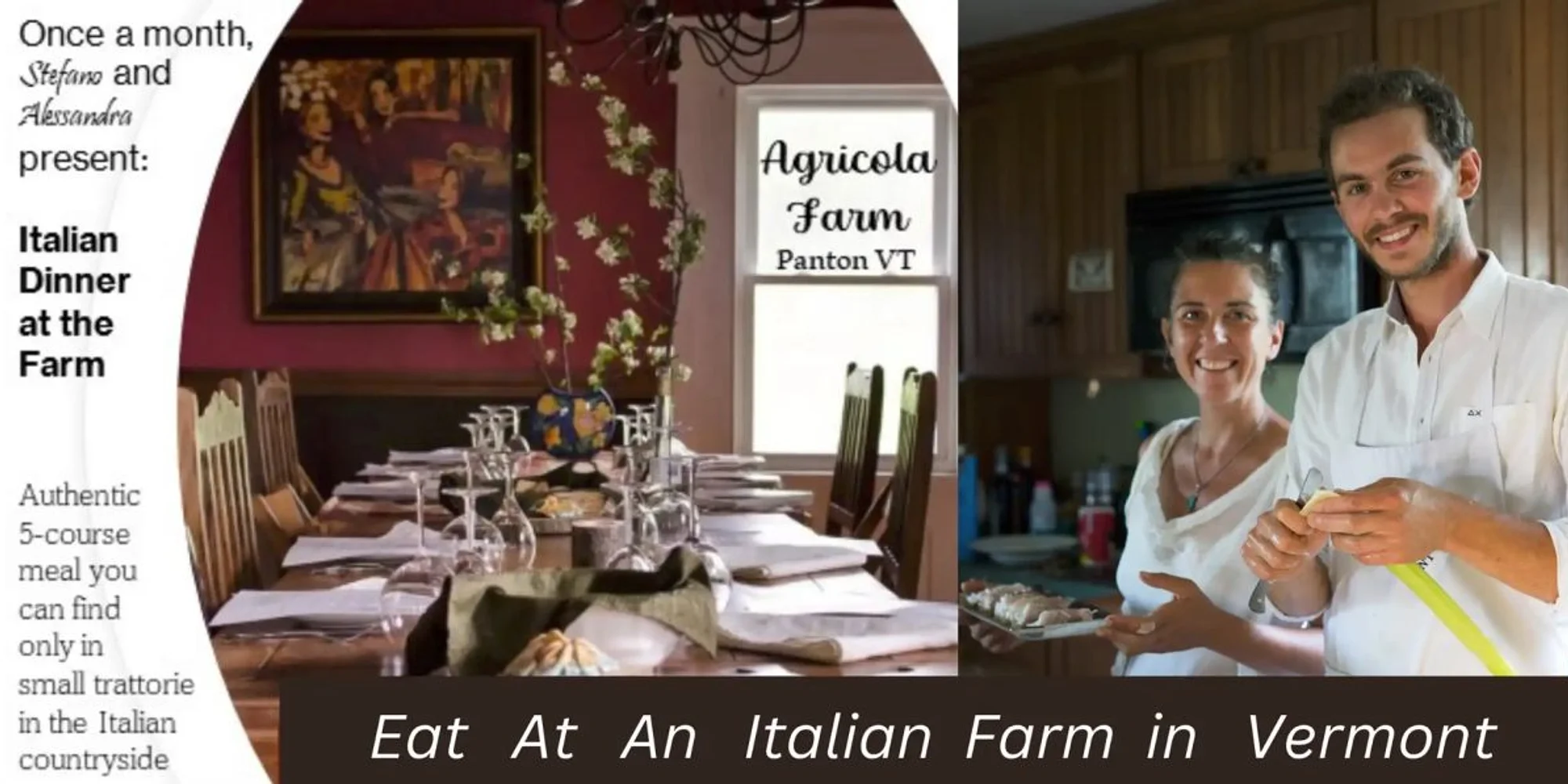 Alessandra and Stefano welcome 32 guests at their farm (Agricola) in Panton, Vermont, once a month, for an experience that is more than a delicious and authentic Italian dinner. While sitting at the table in their 1850’s farm home, you really get to savor the concept of farm to table, or we should say farm-table. It probably helps the fact that the pigs, sheep and chickens are raised across from the farm house with love and compassion and by the same hands that now turn these wholesome products into traditional Italian dishes meant to cuddle your palate and your soul. Register here.