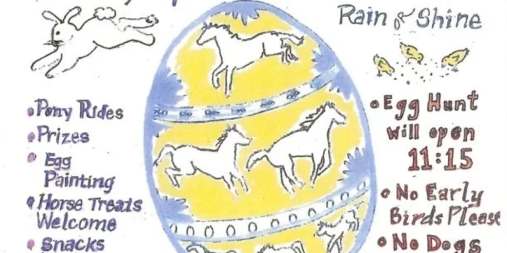 Join Eddy Farm for their annual Easter Egg Hunt and Open Barn! Pony rides, raffles, egg painting, bake sale, and of course, the Egg Hunt! – Rain or Shine – Egg Hunt gates open at 11:15am – All ages welcome – Please bring your own basket, water, and appropriate footwear. Eddy Farm School for Horse and Rider is a nonprofit organization, there is no admission fee but donations are welcome.