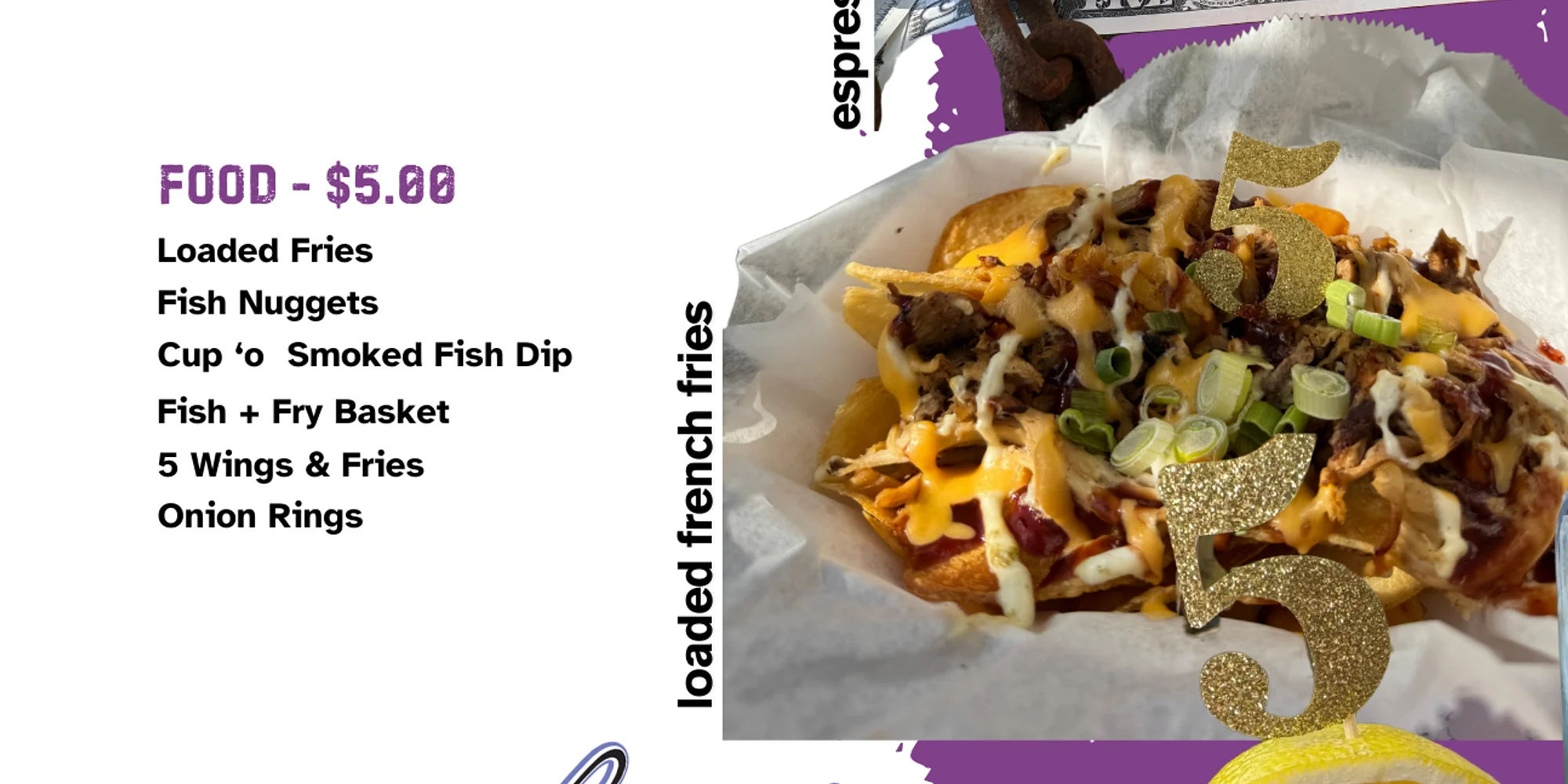 Brought to you by Skipper’s and Blue Ice Vodka! From 5pm to 7pm each Friday come in and enjoy a great value! We know money doesn’t grow on trees ‘round these parts (and especially these days)! But at Skipper’s Smokehouse, five bucks will get you a whole lotta flavor through summer! Introducing FIVE DOLLAR FRIDAYS brought to you by Skipper’s and Blue Ice Vodka! Join us every Friday through the summer 5p to 7p for our $5 Food & Beverage Menu! Because we can’t promise you’ll be swimming in cash, but we can promise you’ll be swimming in deliciousness. All items on the special menu will be available for just FIVE BUCKS – from catch of the day nuggets to espresso martinis to pulled pork tacos to huckleberry lemonades and so much more! We are here for you Thursday through Sunday with something fun and special deals daily!