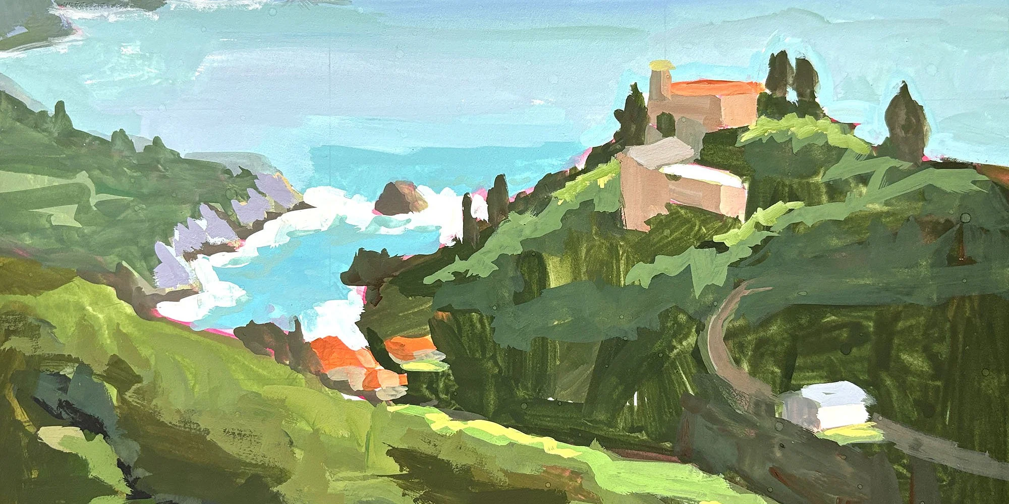 About the Demo Have you heard about gouache? It’s an opaque water media that’s having a moment on social media. Artists like it for its vivid color, ability to layer, and quick-dry properties. But it requires finesse in terms of water use and paint manipulation.  In this demo I will create a gouache landscape showing a scene from my travels in Europe. I start with a reference photo, a value sketch, and a drawing on watercolor paper. As I begin to apply paint, I’ll explain my approach to color and my techniques to get the best out of this versatile medium. More of my work can be seen at www.LindaHugues.com. The demo will be filmed and shown live on Zoom.     Artist Statement For me travel is a delight to the senses. It leaves me yearning to translate that emotion into paint. I especially love sunlit views with strong forms and bright colors, woven with a suggestion of activity and connection.  As I start each painting my aim is to convey what is unique about the architecture, landscape, and light of that particular location. I also like to include people because they bring the scene to life. My process includes a strong focus on composition, achieved by starting with a value sketch. Then I’ll use color to evoke the unique sense of light and atmosphere in that special place. I typically work in oil for large paintings and gouache for smaller works.