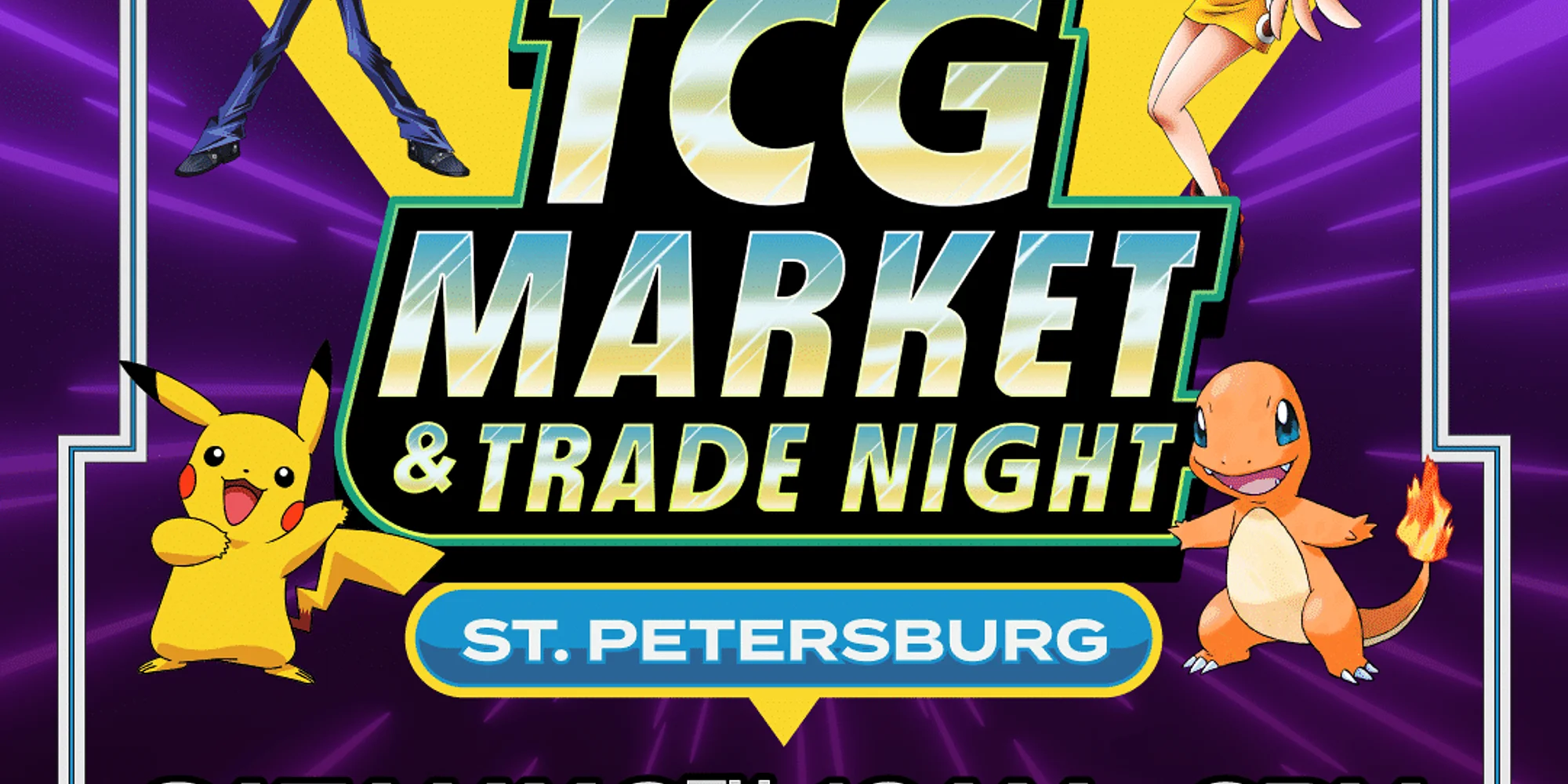 It's time for another TCG Market and Trade Night! Our first one was a huge success and this one is going to be even bigger! This epic trading card event will host over 90 vendors offering rare and collectible Pokémon, Yu-Gi-Oh, Magic: The Gathering, and One Piece cards. Whether you’re a seasoned collector, a casual player, or just looking for fun, there’s something for everyone. Enjoy hourly giveaways, food trucks, and TCG Tournaments throughout the day. Meet fellow enthusiasts, trade cards and discover hidden treasures. Admission is free (you must RSVP), parking is free and doors open at 11 AM. Don’t miss the ultimate TCG celebration! Free booster pack for the first 500 people to RSVP! Free entry for Booster Boxes RAFFLE when you RSVP! Special "VIP Ticket" will get you in the door 1 hour before everyone else! These are limited! We are giving away $2,000 in huge Pokemon Prizes and supporting a local pet shelter! Add some raffle tickets to your RSVP and you could win big while helping animals! $5 for 1 ticket $15 for 4 tickets (best value!) Proceeds will go to PetPal Animal Shelter here in St. Pete! Vendors: please click this link to book and secure your table. Reach out to Zach with any questions: zach@coastalcreativetv.com 813-452-9799