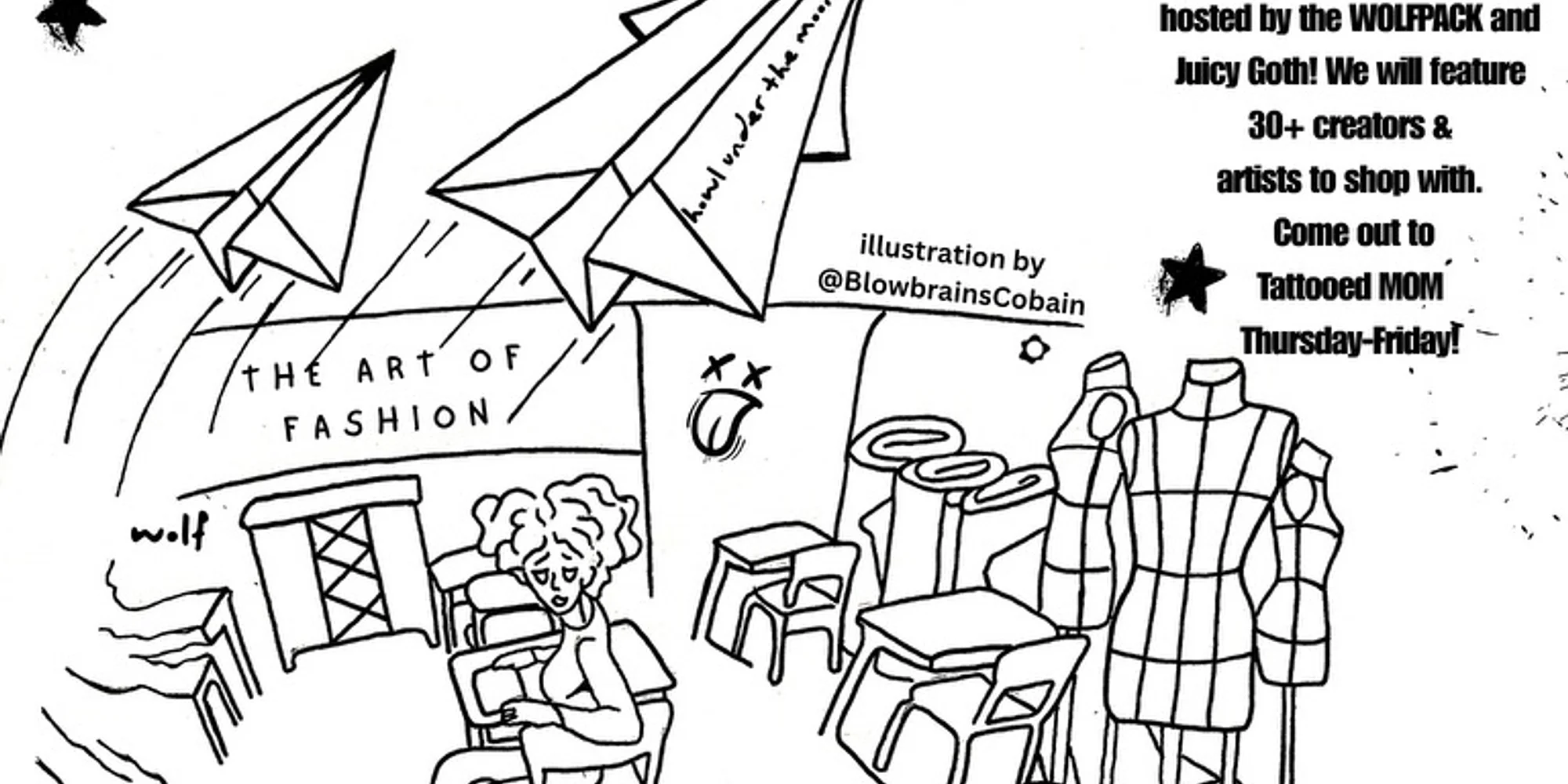 Two nights full of amazing art, dope brands, music that stays bumping && of course all of the amazing Wolfpack energy only we can bring! This event is hosted by Lone.Cobain && JuicyGoth of the Wolfpack. It will feature a list of all new artists so come check them out and make sure to donate to the Wolfpack so we can continue to bring you more events like this one. Every donation is appreciated! THURSDAY, APRIL 9TH 5-10PM SUGGESTED DONATION $5 >> NOTAFLOF << Artist list: – @blowbrainscobain – @JuicyGoth – @Dualitygems – @LadyCruzn – @Starlight_Dreambright – @Iamgodbodyalki – @Eeeuphoriccc – @ArtbyTJA – @Atiyecreates – @Calla_lily_beauty – @Blaknebulaphilly_ – @josephthedreamerrrrr – @Lowkey_trash – @Derdyclothes – @Retro.Ade – @Itsnotnicetostare – @Beginnxrsluck – @Thecooperproject73 – @Wlb.mtc – @Rose_curlz – @Maryjanetuftstuff – @Docscow – @Slinkskull *** What’s Up at TMoms: • Thursdays, 4-10pm | we support bad decisions but this isn’t one of them. 75¢ pierogis all day for Pierogi Thursday … with all the toppings & sauces ur heart desires + $3 cans of tecate!!! • Daily Happy Hour | $4 drafts every day from 4-6pm, everybody cheered! • Daily Menu | Tattooed Mom will also be serving tasty eats and ice cold drinks all evening. • Upstairs dining, bar access, and event entry is 21+ w/ valid ID. • Accessibility at TMoms | Due to the construction of our historical building, Tattooed Mom is only partially accessible. Our event space is on the second floor, which is only accessible via a flight of stairs (20 steps, 3 feet wide, railing on the left side only). For more information, please visit our Accessibility page.