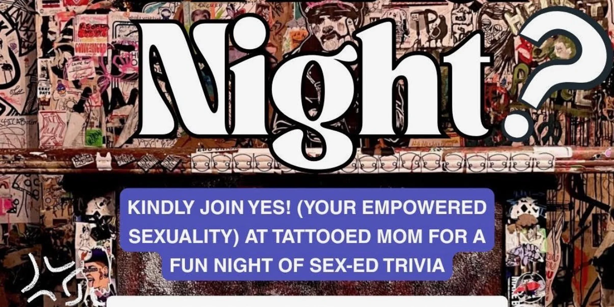 This event is a Sexuality Trivia Night. The goals are to raise awareness for YES!, build community, educate people about sexuality, and have a fun night! TUESDAY, APRIL 21ST 6-9PM SUGGESTED DONATION $10-20 >> NOTAFLOF << TICKETS: EVENTBRITE Follow YES! on Instagram. *** What’s Up at TMoms: • Tuesdays, 4-10pm | it’s tacos. it’s tecate. it’s tuesdays. what more can we say. $1.50 beef or bean tacos every Taco Tuesday + $3 tecate! • Daily Happy Hour | $4 drafts every day from 4-6pm, everybody cheered! • Daily Menu | Tattooed Mom will also be serving tasty eats and ice cold drinks all evening. • Upstairs dining, bar access, and event entry is 21+ w/ valid ID. • Accessibility at TMoms | Due to the construction of our historical building, Tattooed Mom is only partially accessible. Our event space is on the second floor, which is only accessible via a flight of stairs (20 steps, 3 feet wide, railing on the left side only). For more information, please visit our Accessibility page.